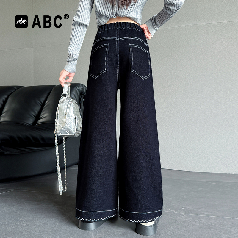 女春秋高腰宽松不贴腿喇叭拖地马蹄秋冬 子牛仔裤 大码 大阔腿黑色裤