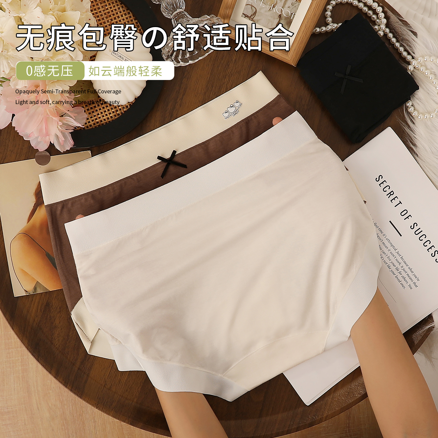 透气三角短裤 女无痕100%棉裆布中腰式 10A抗菌 Knar包臀内裤 Caria