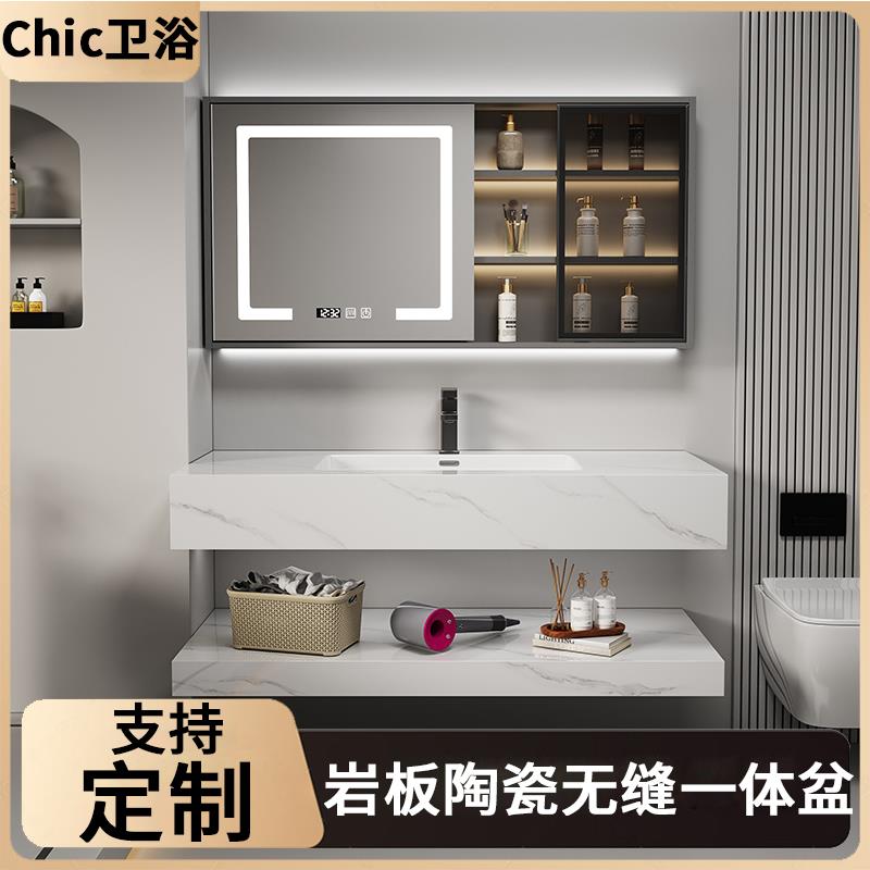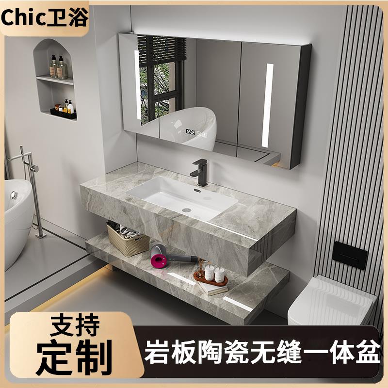 现代岩板陶瓷无缝一体盆浴室柜组合洗漱台洗脸盆酒店卫浴柜卫生间