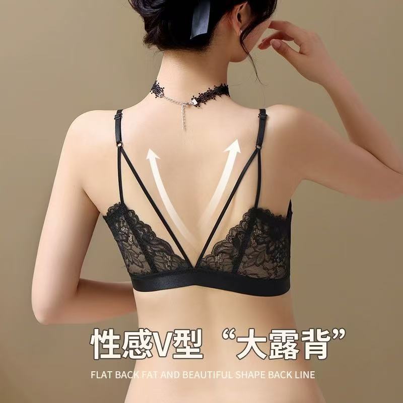 爆款 夏前扣美背内衣女小胸聚拢文胸罩无钢圈蕾丝性感套装 2025新款