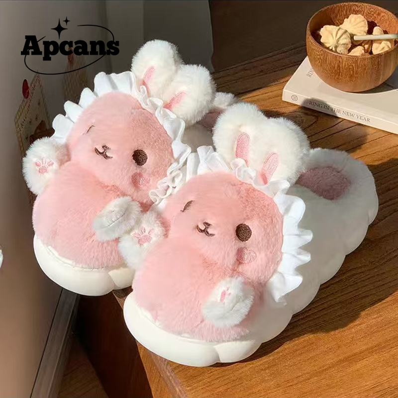 2025新款 秋冬季 室内家居厚底保暖踩屎感毛毛绒 情侣款 apcans棉拖鞋