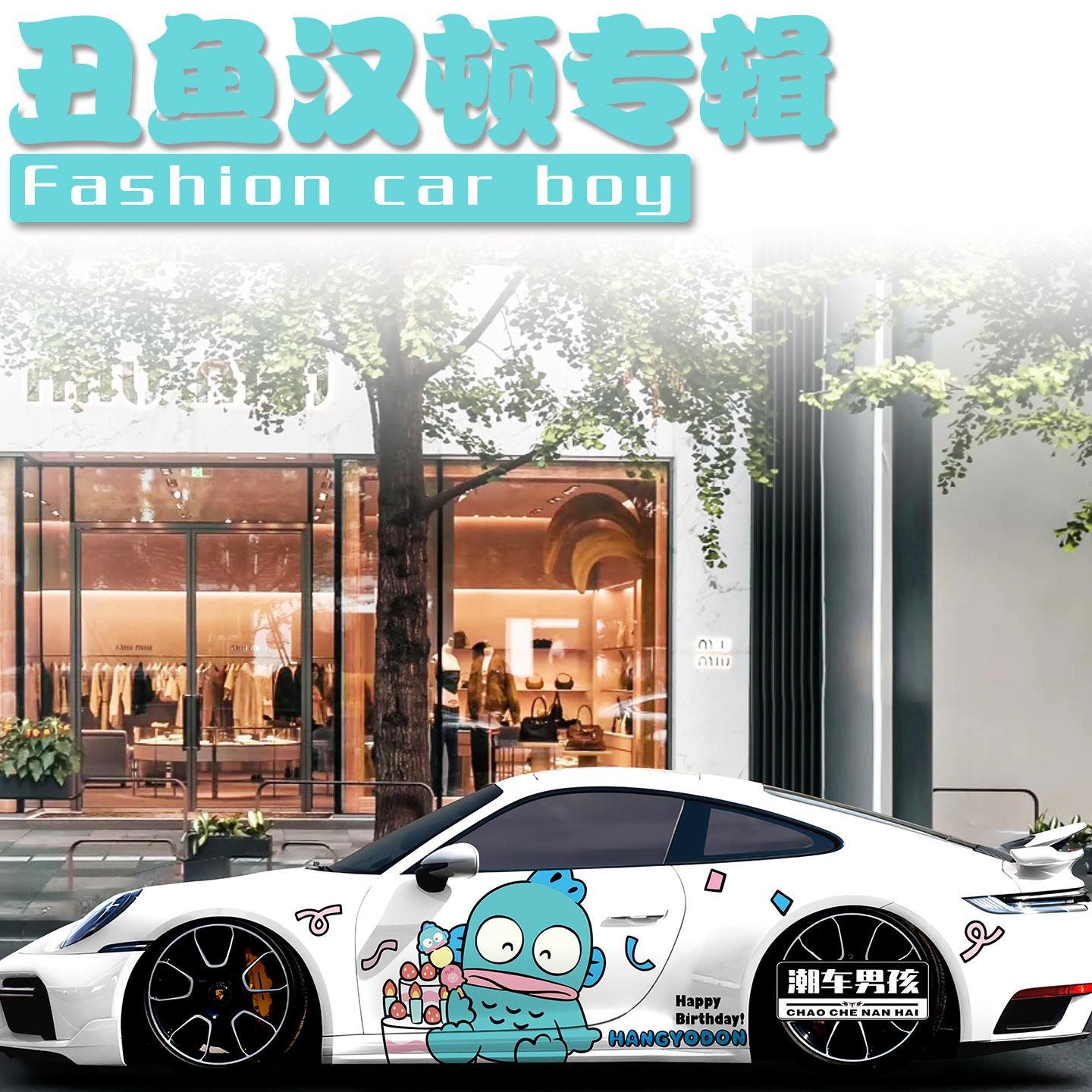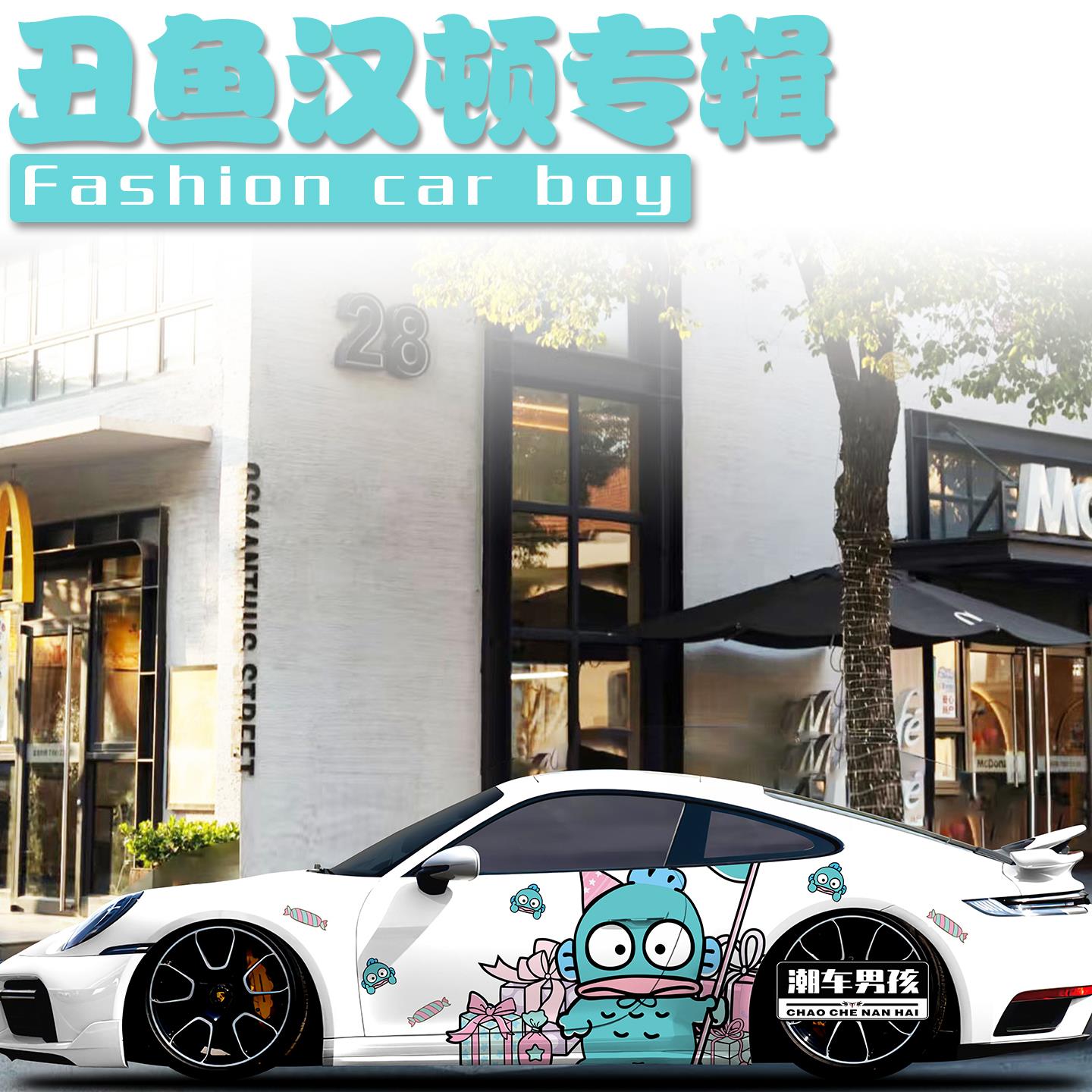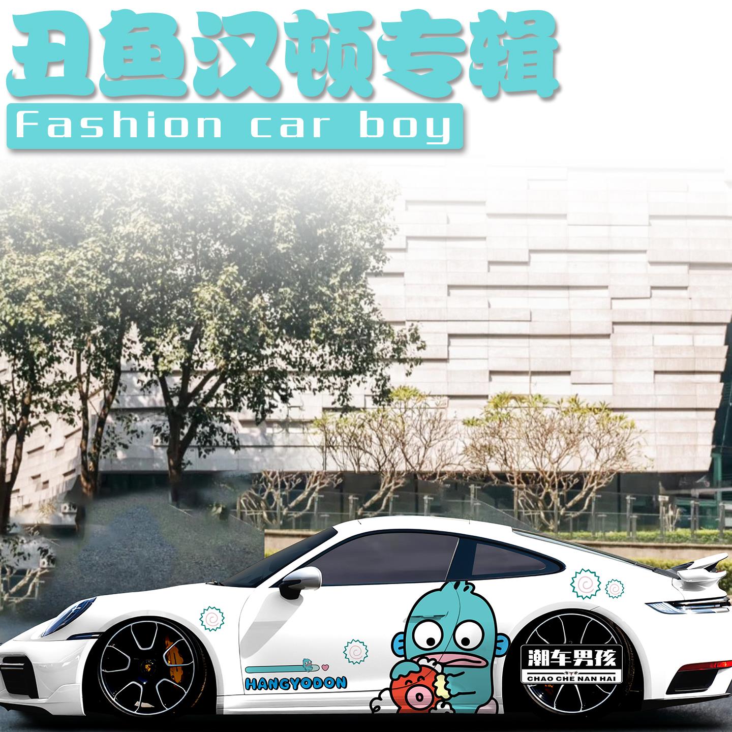 新款 定制 保时捷911车贴718卡通三丽鸥丑萌丑鱼小百合汽车贴纸个性