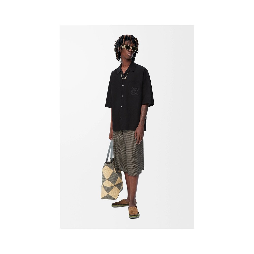 休闲男生工装 回力长袖 春秋2025新款 男士 格纹衬衣外套 黑白格子衬衫