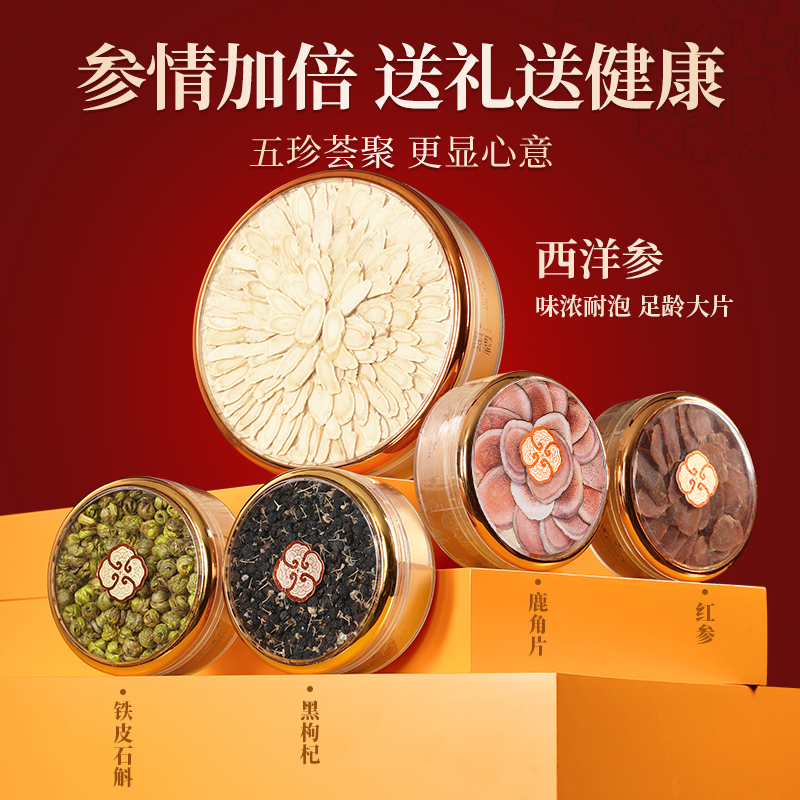 西洋参礼盒五拼中秋节礼品礼物送礼长辈滋补养生补品送父母家长