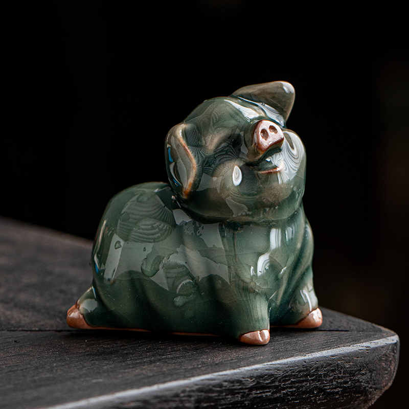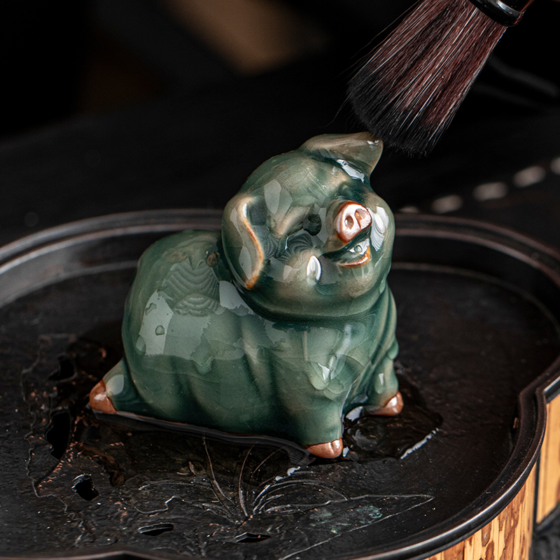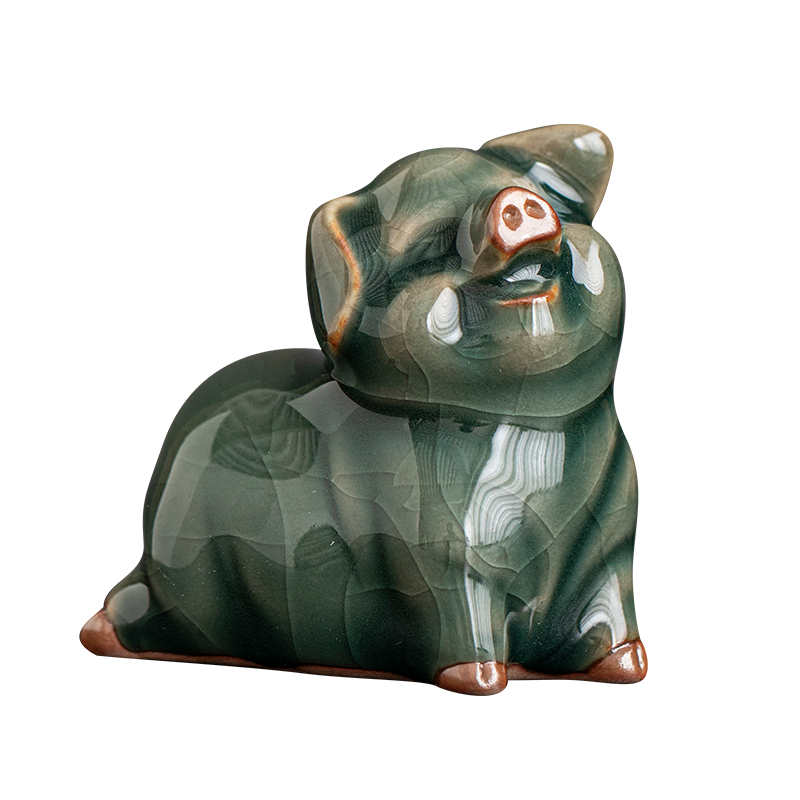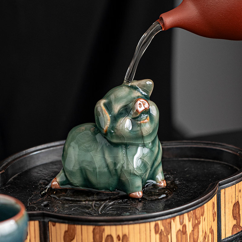 哥窑茶宠创意可养精品小猪可爱茶具茶盘摆件小饰品小摆件精品茶玩