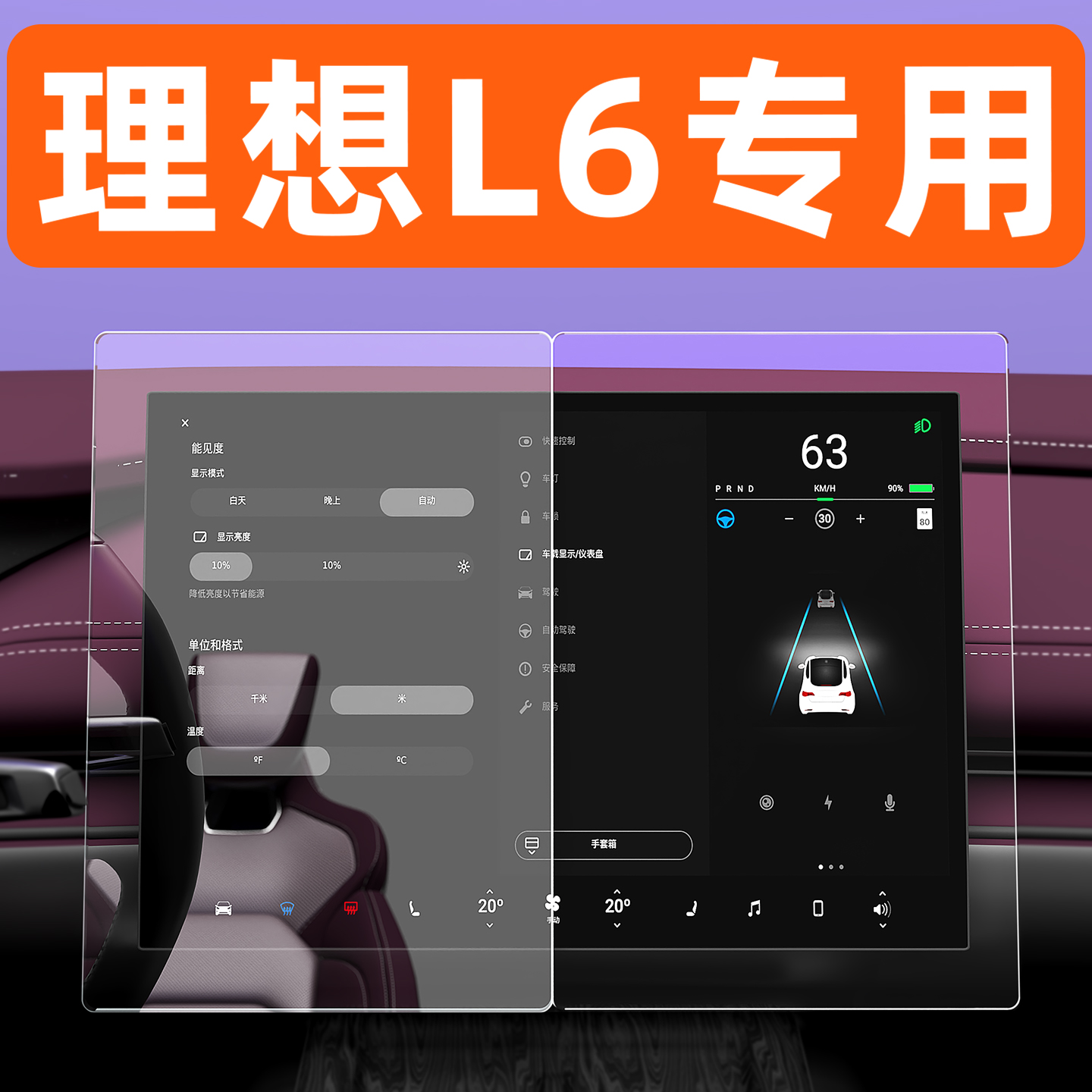 理想L6汽车屏幕钢化膜中控导航车机贴膜专用内饰显示大屏保护膜