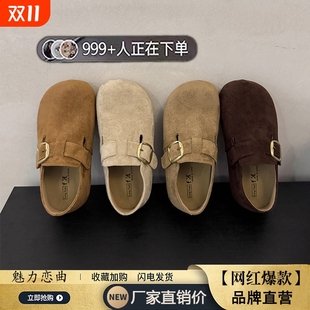 复古休闲博肯豆豆鞋 厚底全包勃肯鞋 一脚蹬丑萌单鞋 新款 女2025秋季