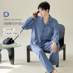 睡衣纯棉2025新款 男生可外穿家居服套装 大码 裤 全棉长袖 南极人男士