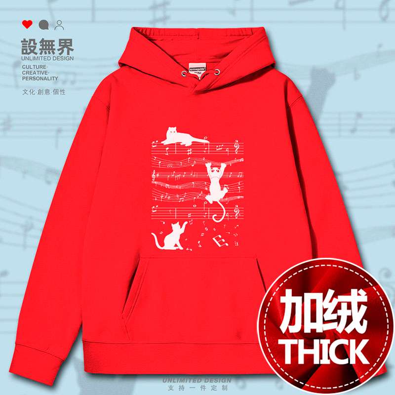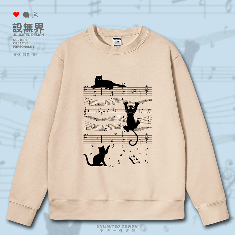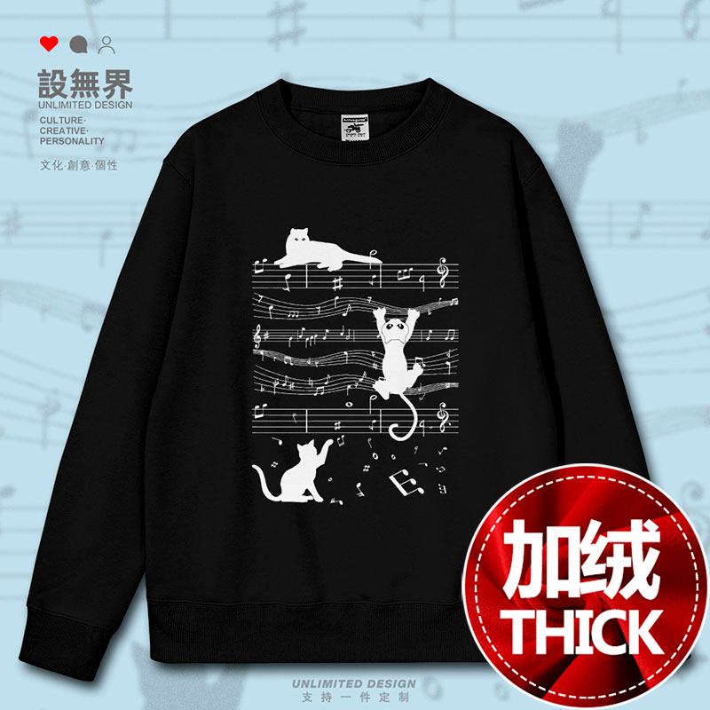 无界 设 可爱音符乐谱猫咪趣味简约连帽卫衣男女个性 创意印花帽衫