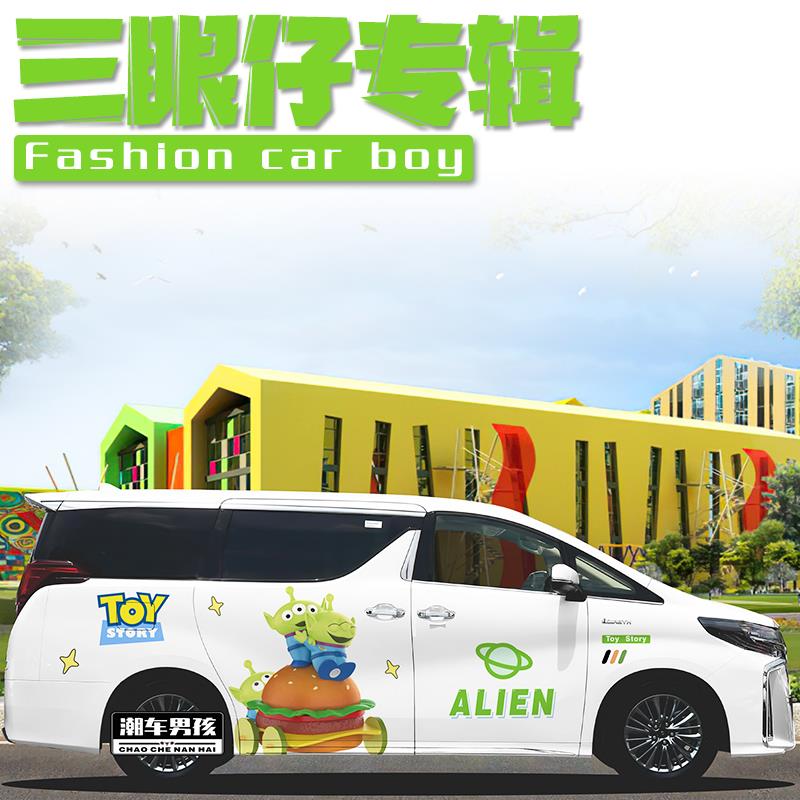 个性 汽车两侧可爱搞怪贴纸MPV 创意定制 埃尔法 外星人三眼仔车贴