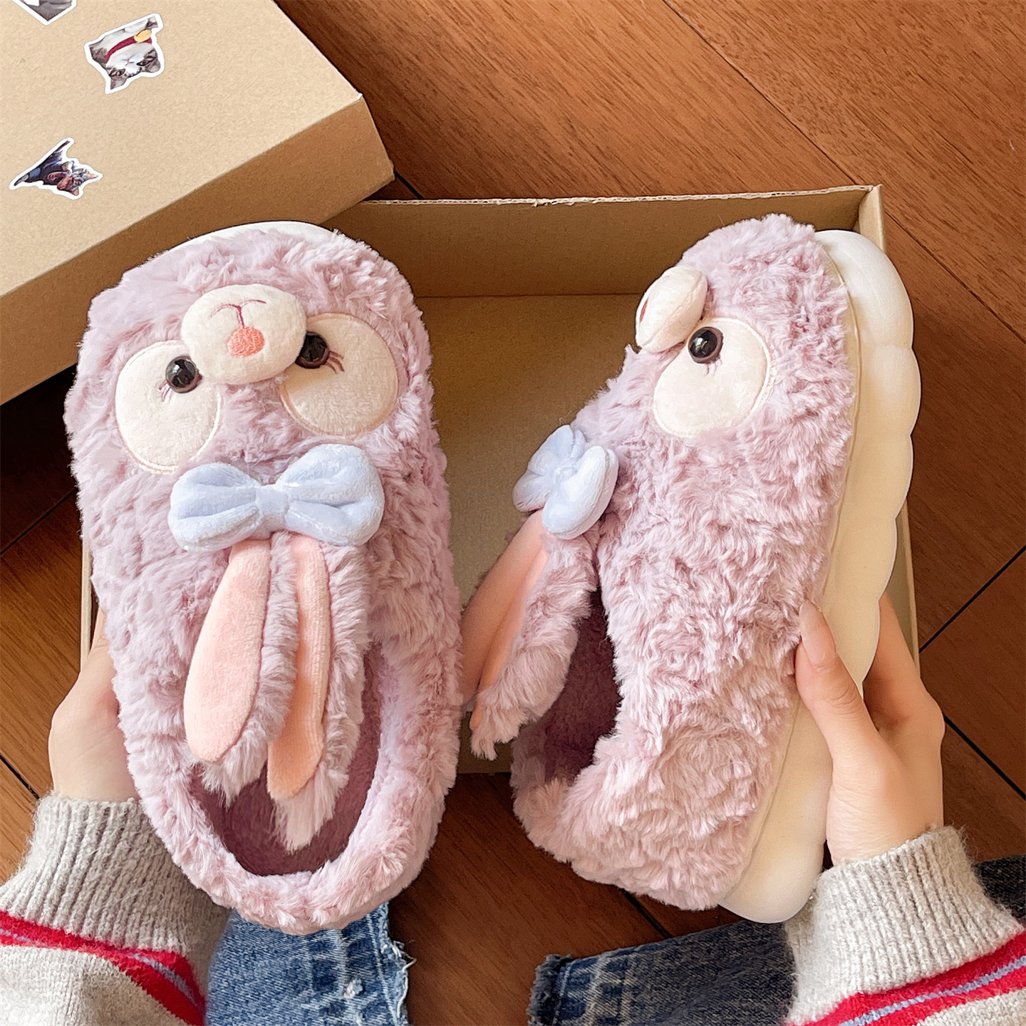 防滑厚底包跟室内家居月子保暖可爱毛毛棉鞋 孕妇棉拖鞋 女士秋冬季