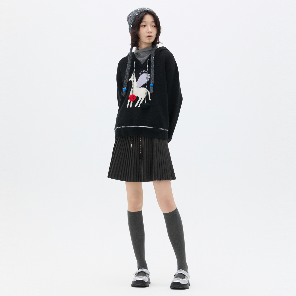 TeenieWeenie小熊女装 学院风百褶半身裙简约休闲短裙 秋季