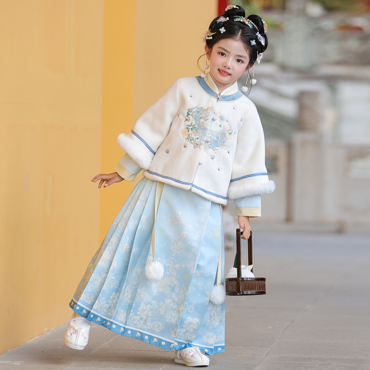 儿童超仙古装 女童中国风汉服秋冬季 冬款 马面裙套装 拜年服 2025新款