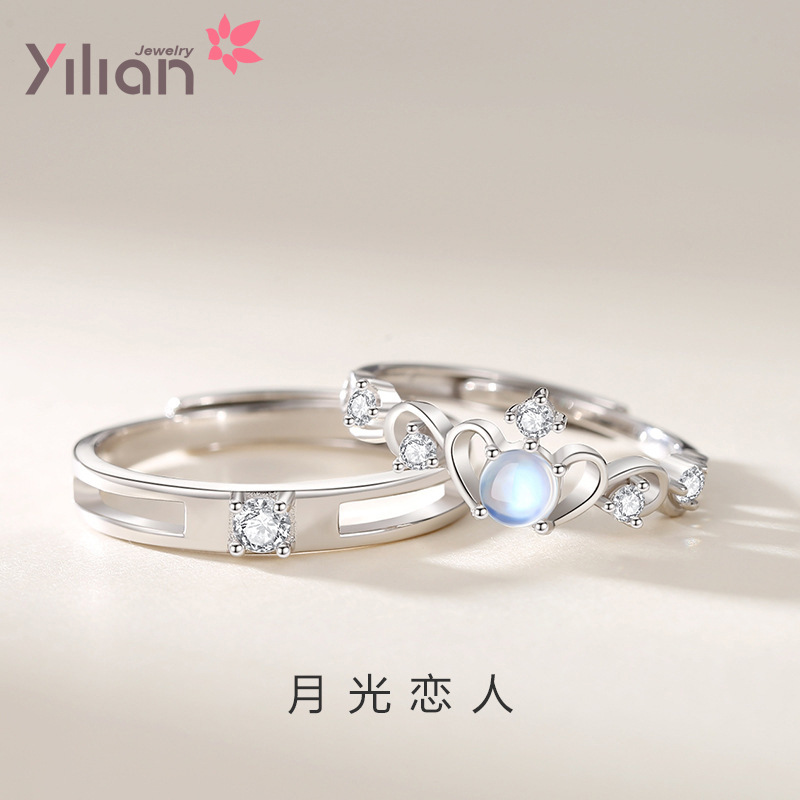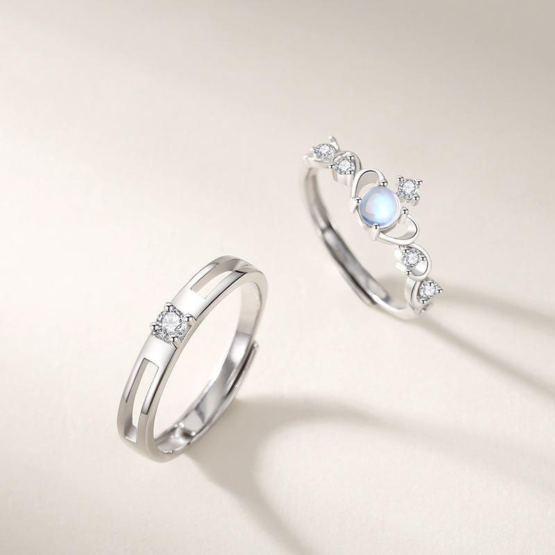 伊莲s925纯银月光石情侣戒指小众ins设计皇冠对戒网红情人节礼物