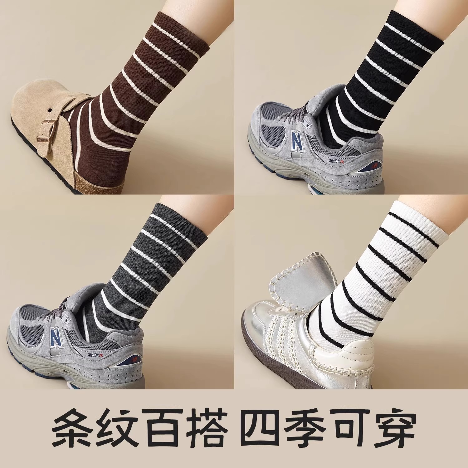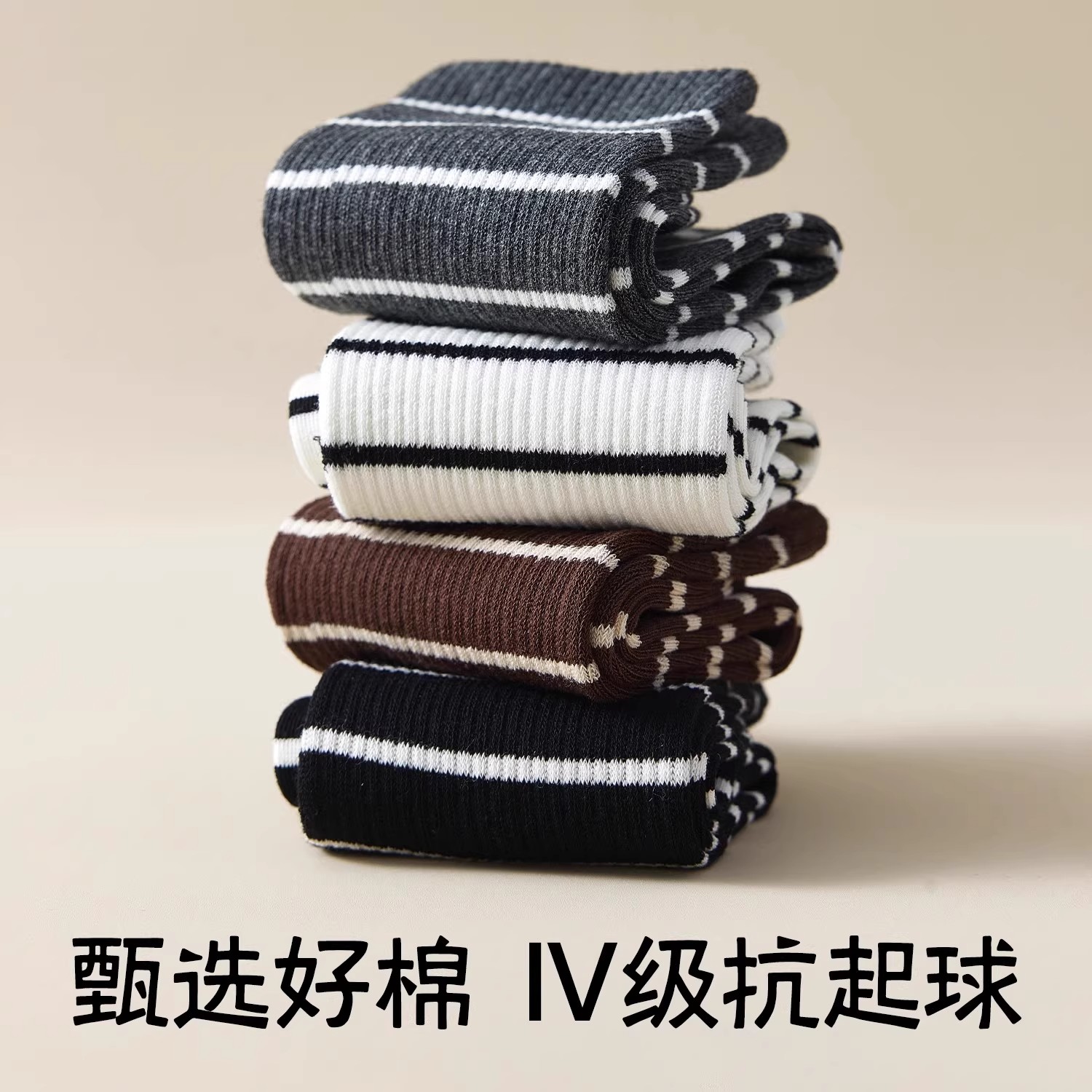 黑白条纹袜子女款 棉袜抑菌日系秋冬灰色无骨堆堆长袜 中筒袜春秋款