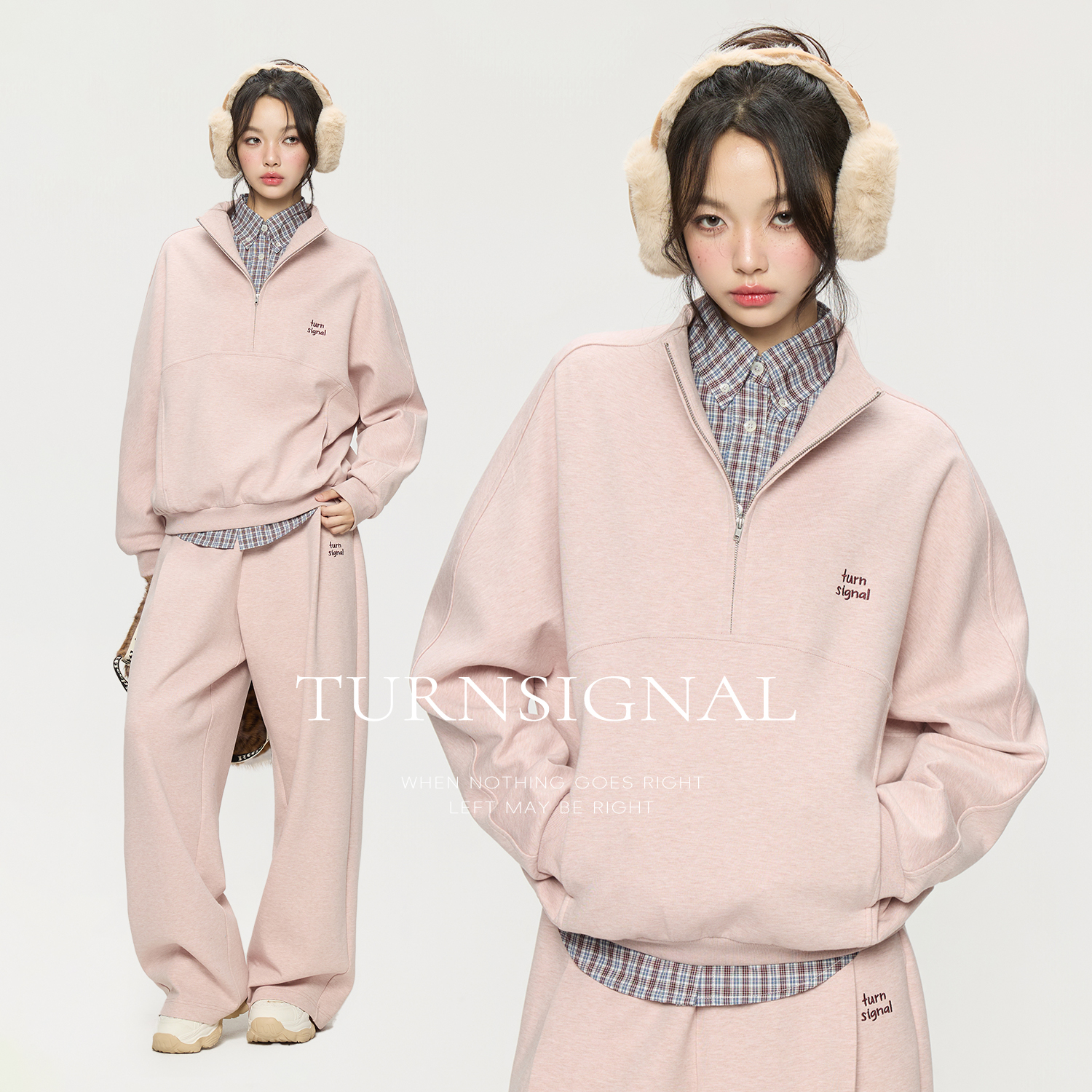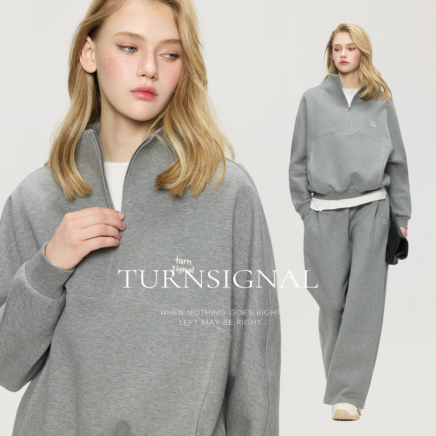 2025新款 女秋季 宽松休闲运动两件套 套装 TurnSignal半拉链卫衣长裤