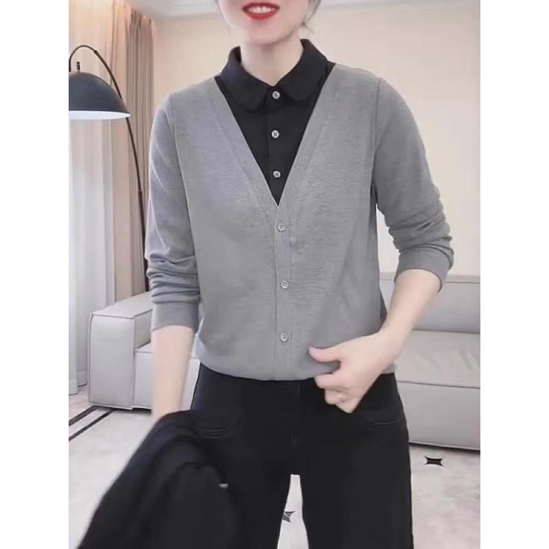 毛衣女款 CLIMAX VISION知识分子风撞色假两件高弹包芯纱针织开衫