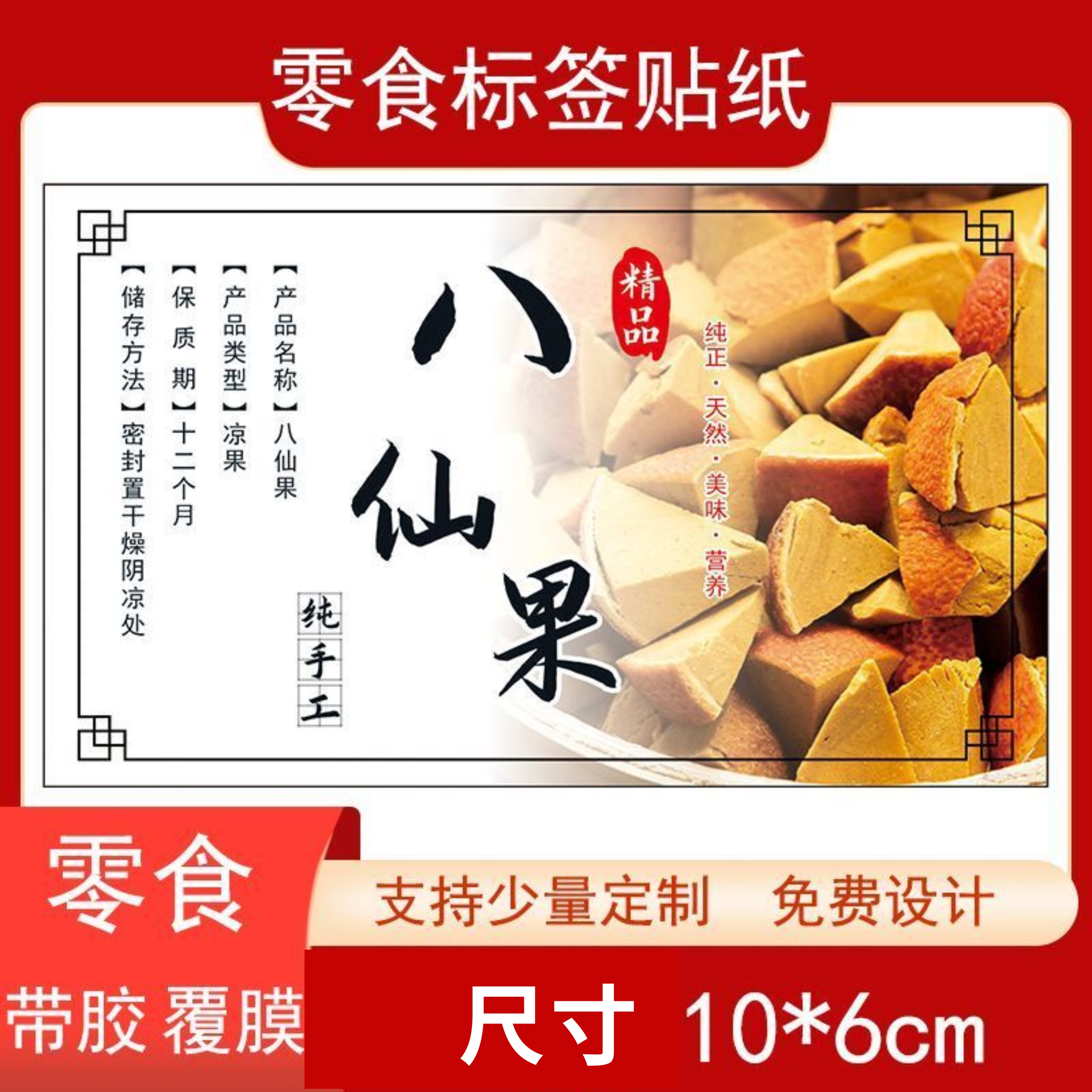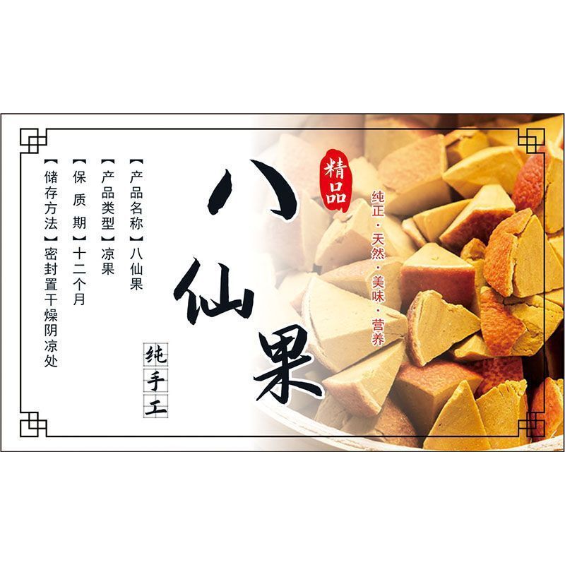 八仙果标签贴纸化州橘红零食不干胶陈皮八仙果带背胶覆膜瓶贴定制