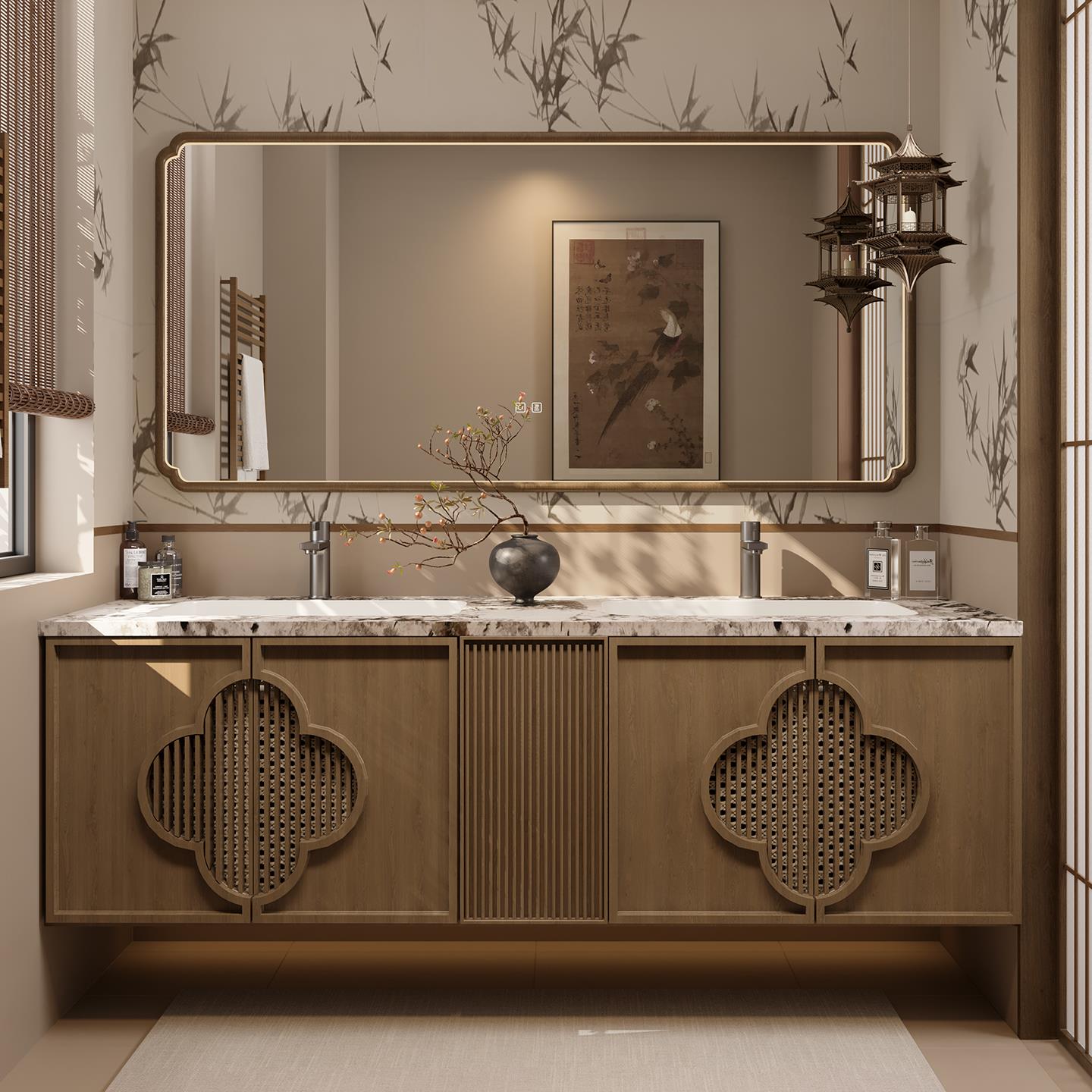 宋氏美学风藤编浴室柜组合卫生间岩板洗漱台洗手池脸盆卫浴柜定制