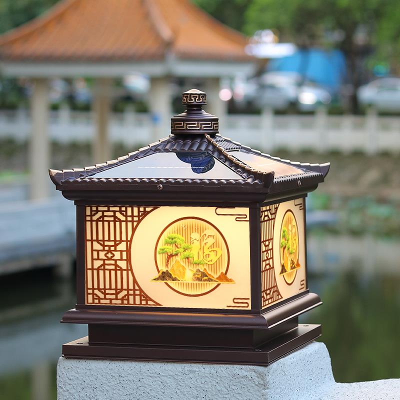 太阳能庭院柱头灯新中式 别墅花园大门口柱灯围墙灯大门两侧柱子灯
