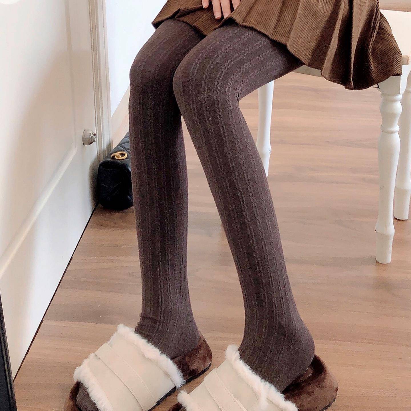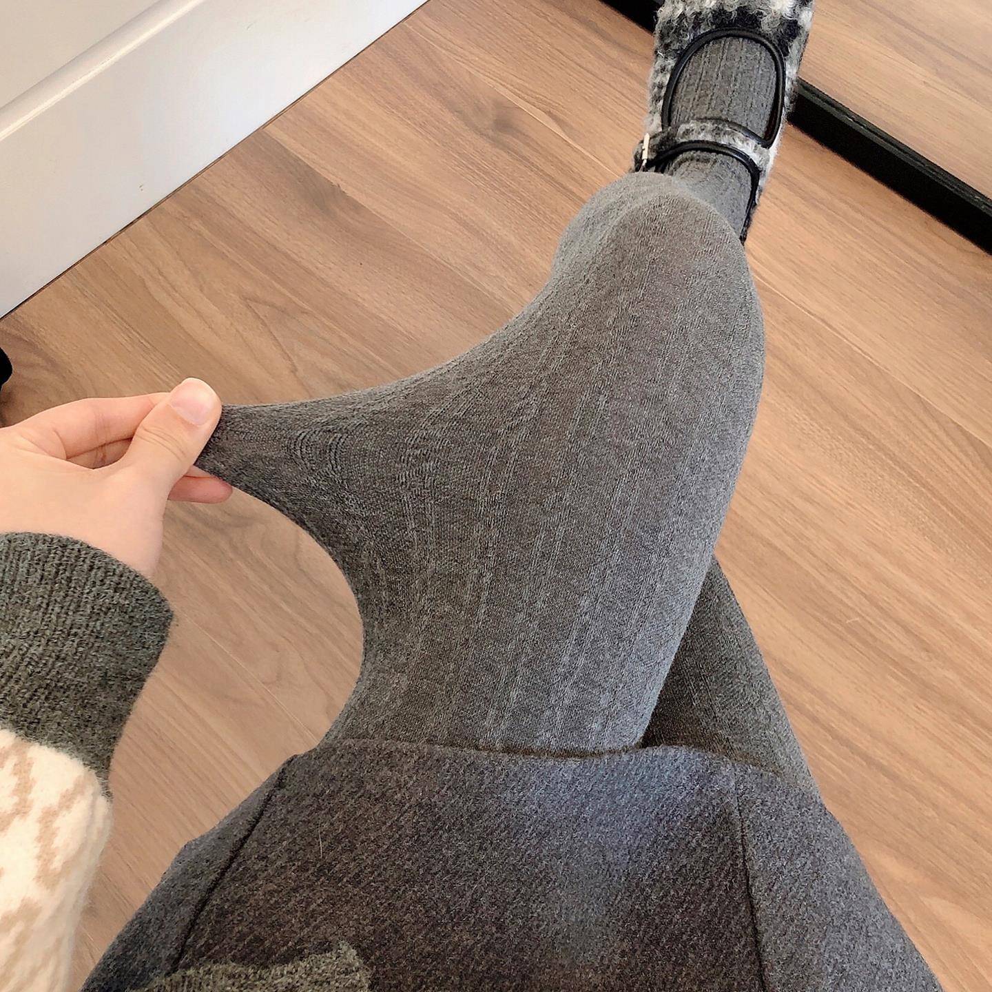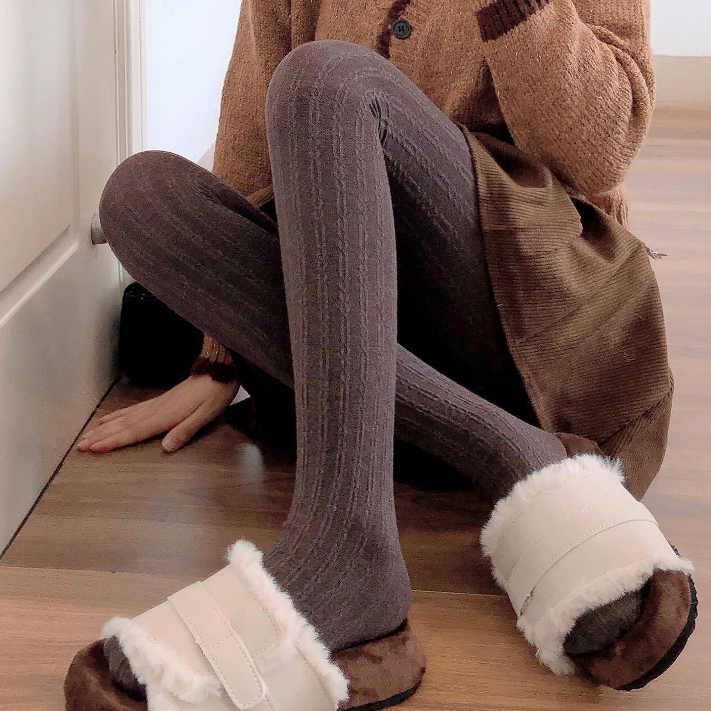 秋冬加厚咖啡色连裤 袜女外穿压显瘦腿麻花纹烟灰色保暖打底1016z