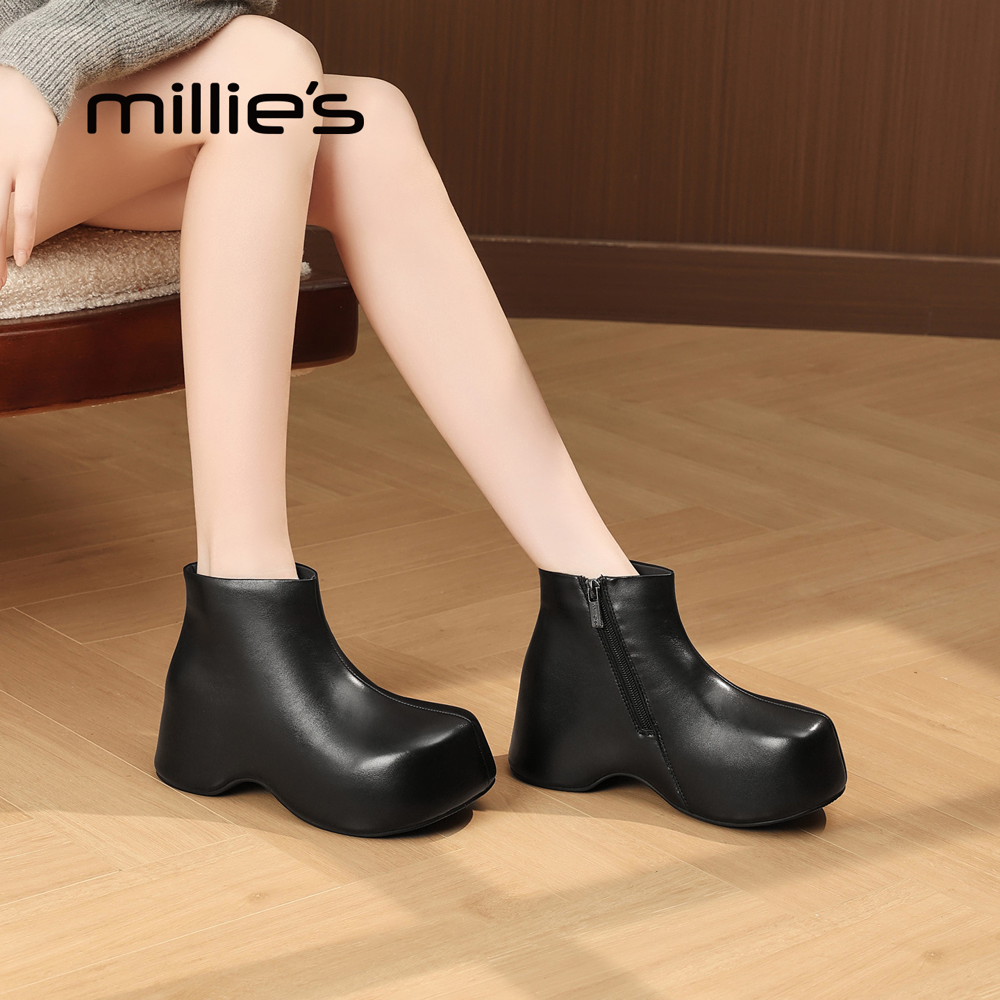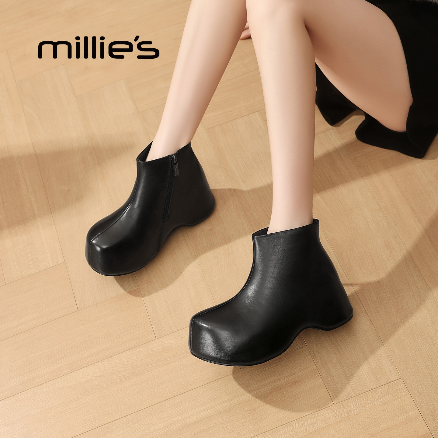 冬季 妙丽2025新款 加绒保暖短靴女粗跟短筒马丁靴子 MILLIE