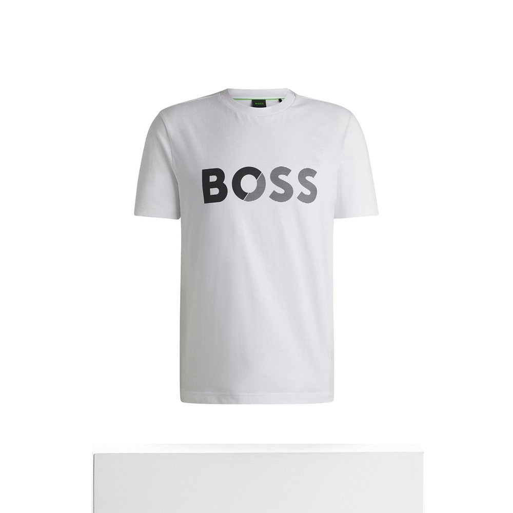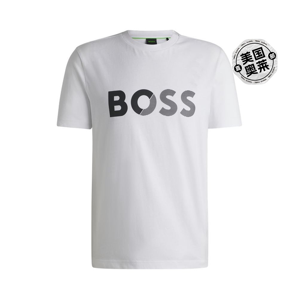 shirt with large 自营bossCotton white logo 美国奥 jersey