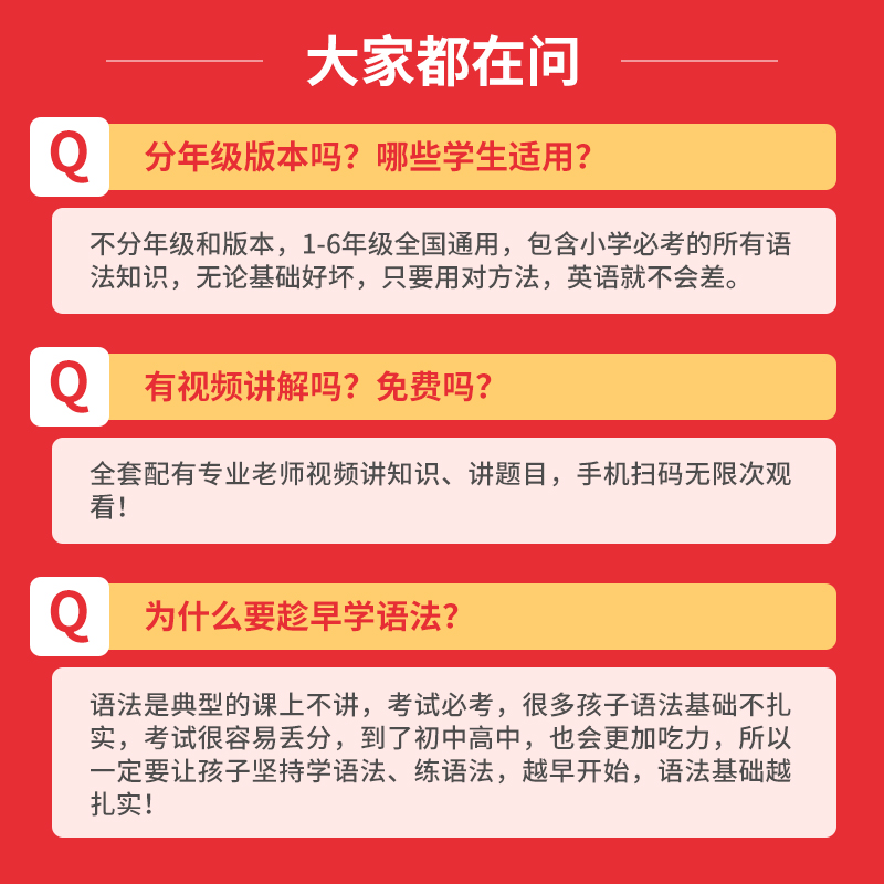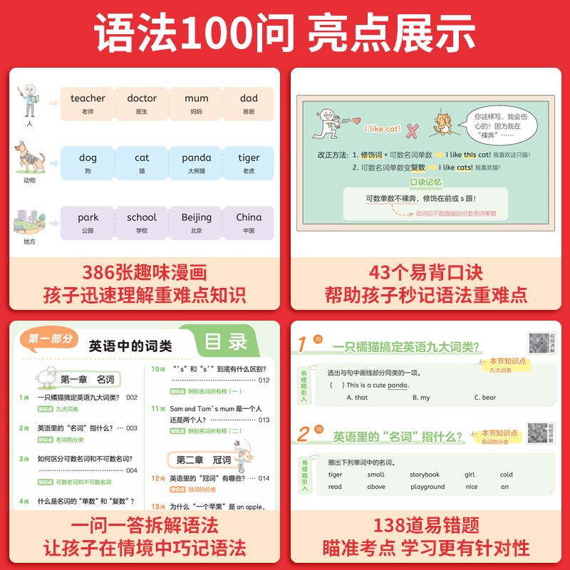一本 配视频讲解 小学英语语法100问每日一练123456年级英语词汇语法练习小学英语口诀助记语法知识点