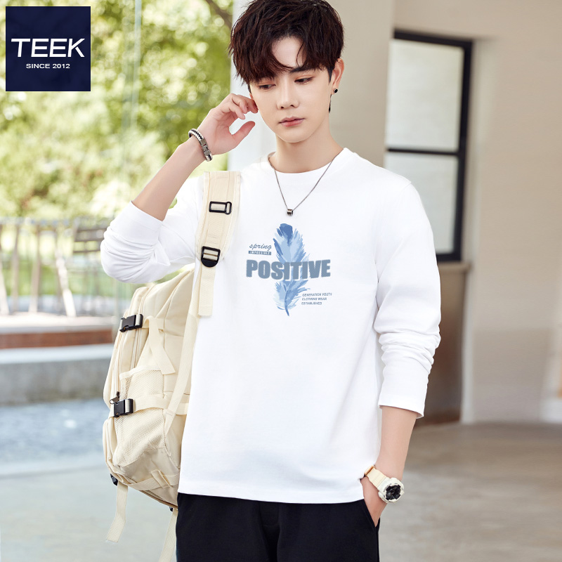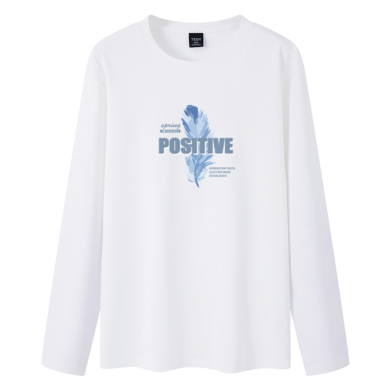 柔软舒适羽毛印花潮流打底衫 T恤男 内搭秋衣 休闲百搭长袖 TEEK秋季