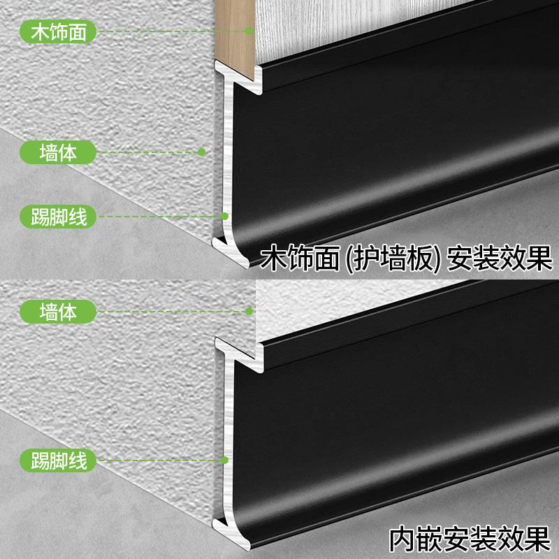 8cm暗装 嵌入贴脚线隐藏不锈钢金属地脚线 内嵌铝合金踢脚线2