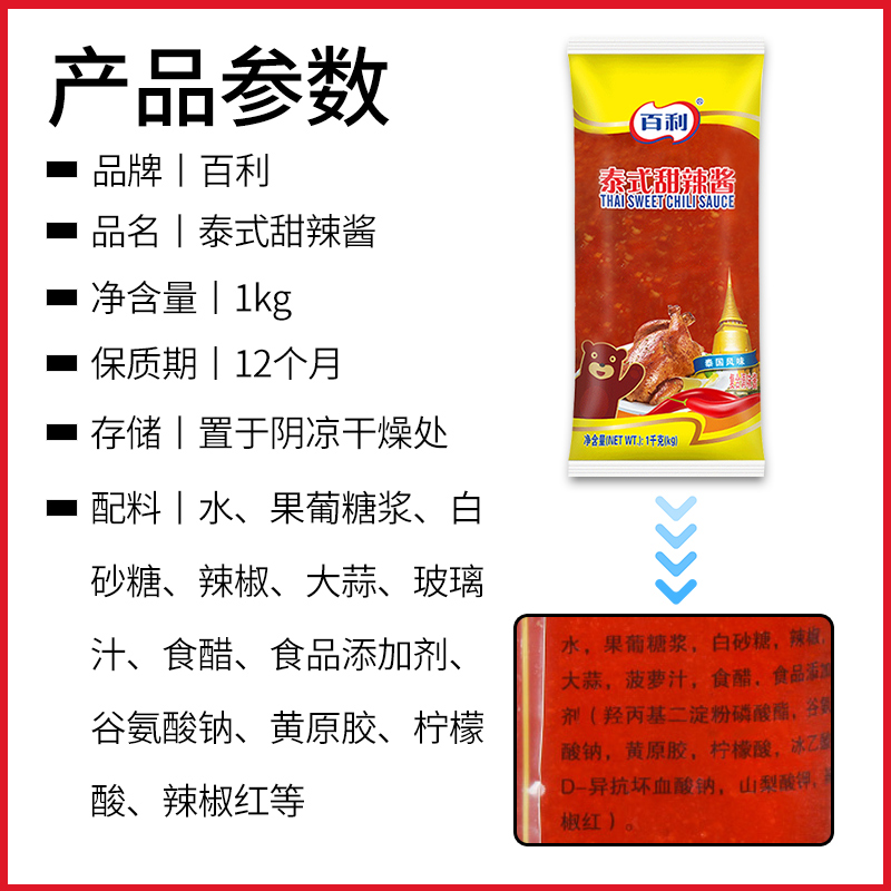 百利泰式 商用蒜蓉甜辣酱炸鸡蘸酱手抓饼海鲜烤肉拌饭酱 甜辣酱1kg