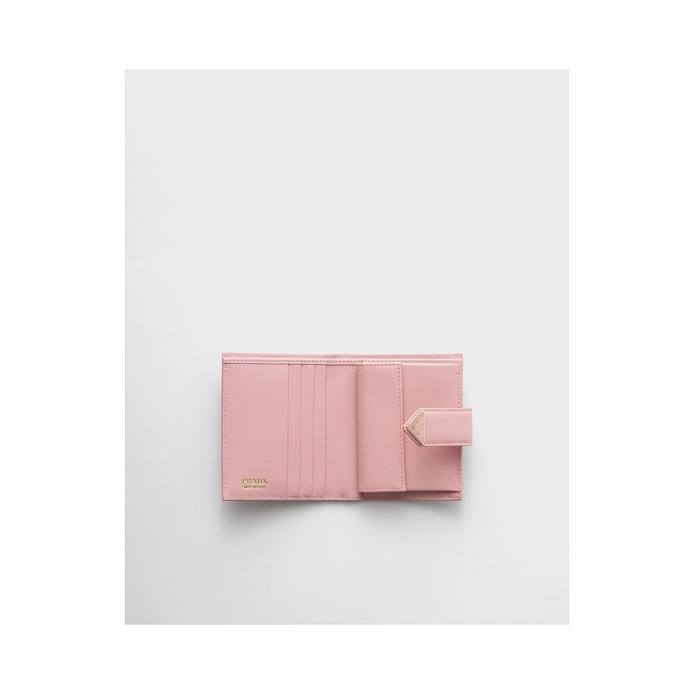 自营欧洲直邮Prada普拉达 Saffiano女士桃子色小牛皮金属三角标识