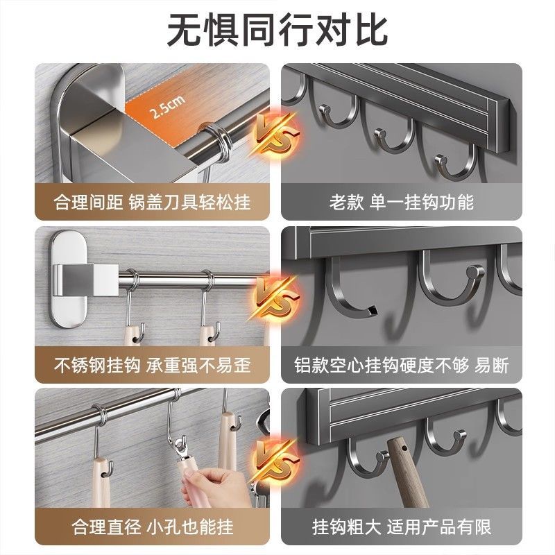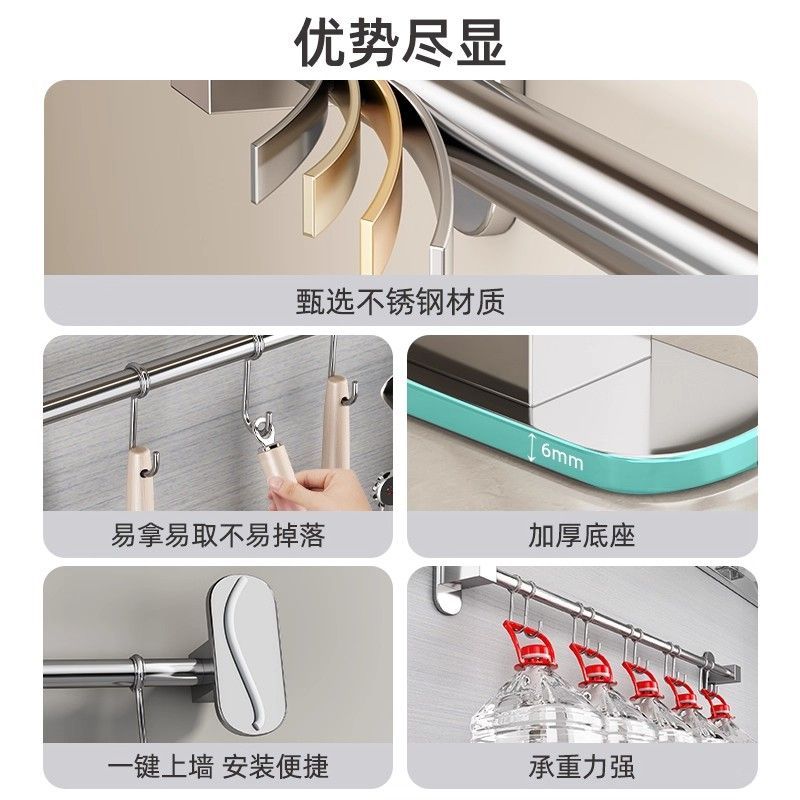 贝凯304不锈钢挂钩免打孔厨房置物架多功能挂杆勺子铲子收纳挂架