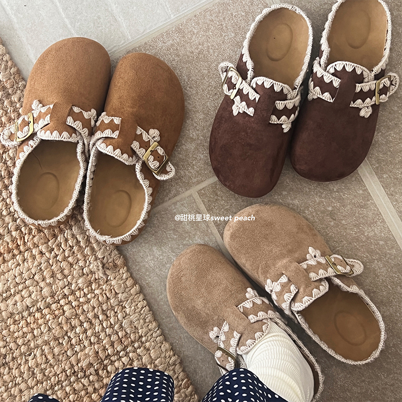 秋冬复古一脚蹬平底包头拖鞋 甜桃星球勃肯鞋 半拖女外穿2025新款