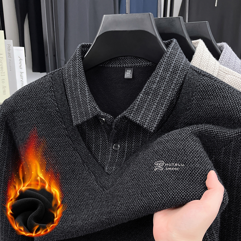 HLA 25秋冬新远红外立领半开襟毛衣男 海澜之家保暖加绒加厚针织衫