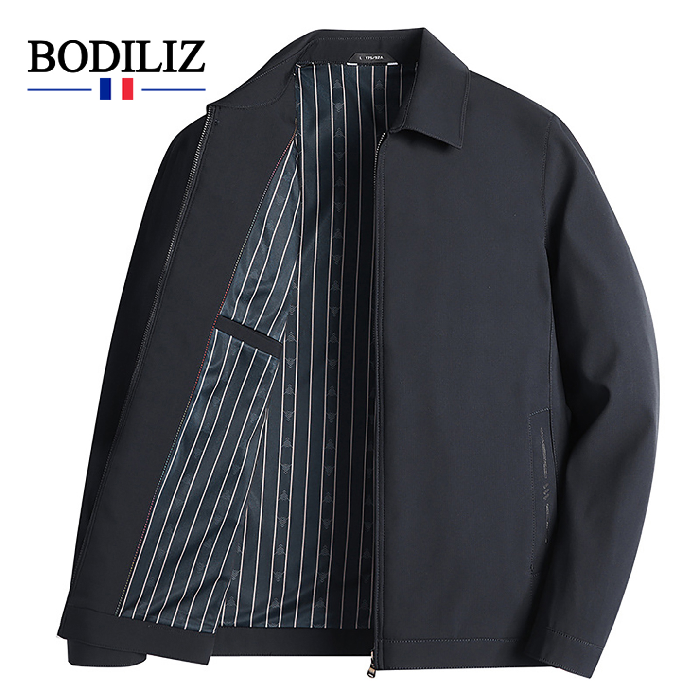 高档藏青色商务翻领行政夹克男外套春秋款 中老年免烫休闲职业男装