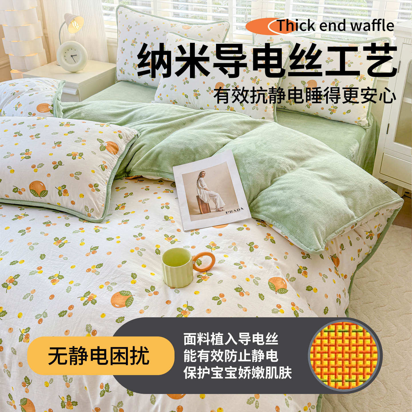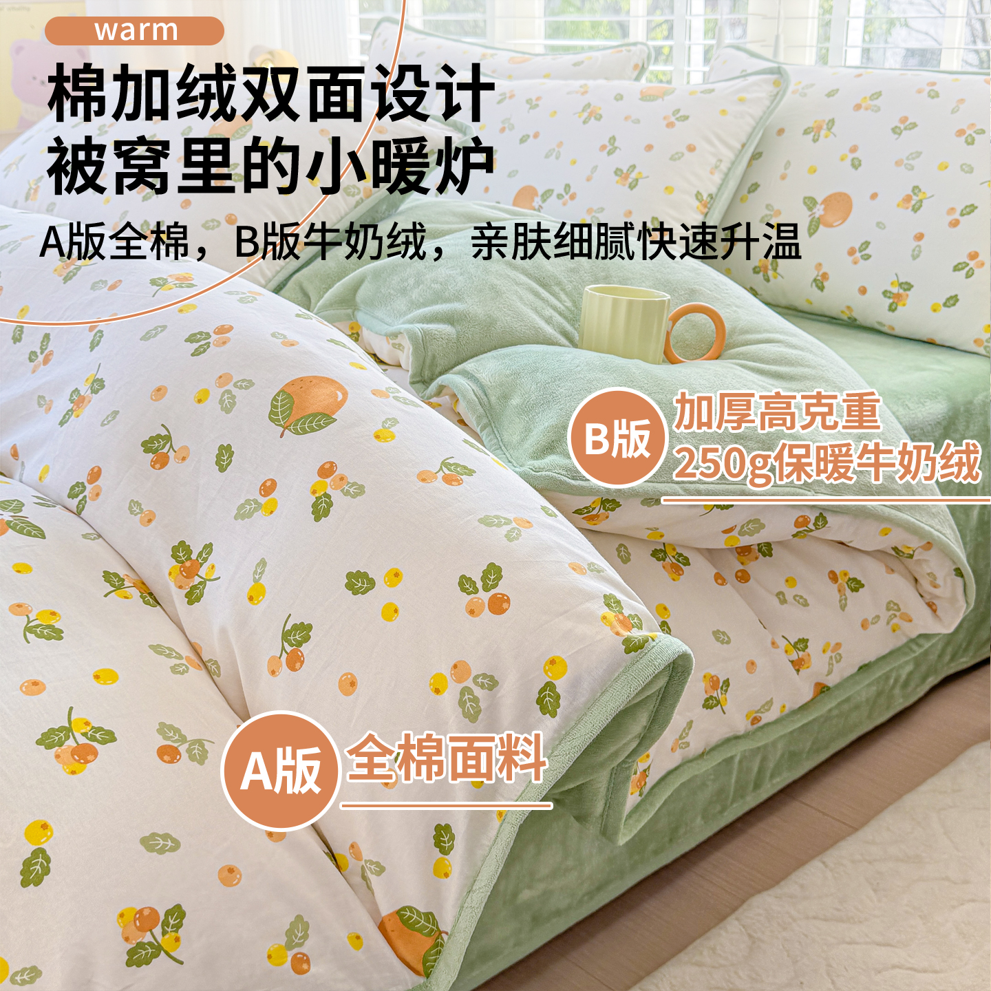 冬季 a全棉纯棉b牛奶绒被套单件加绒珊瑚法兰绒面一面绒一面棉被罩