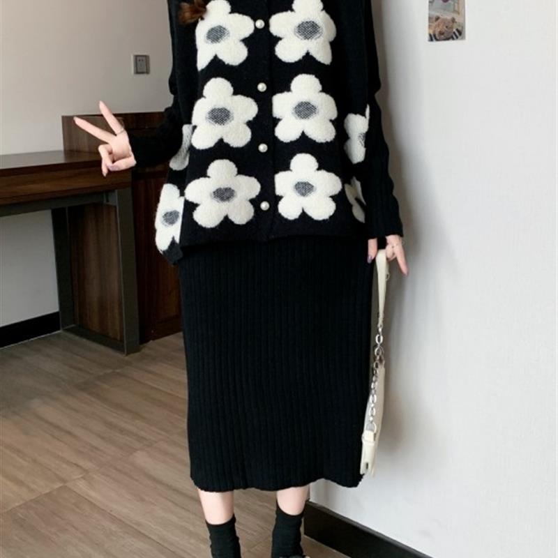 胖mm高级感针织连衣裙开衫 女春秋大码 马甲两 今年流行漂亮套装 新品