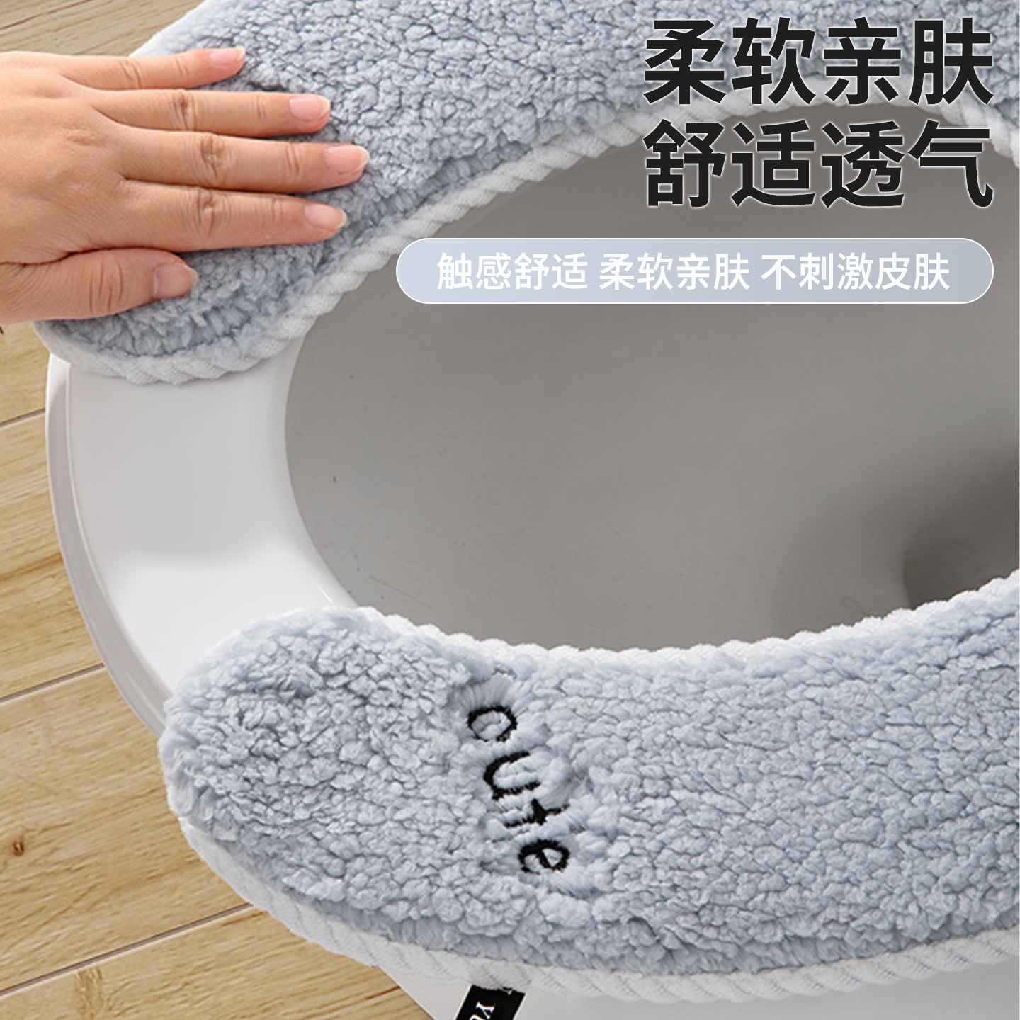 马桶垫子2025新款 坐便器垫圈 冬天加厚毛绒马桶圈坐便套粘扣绑带式