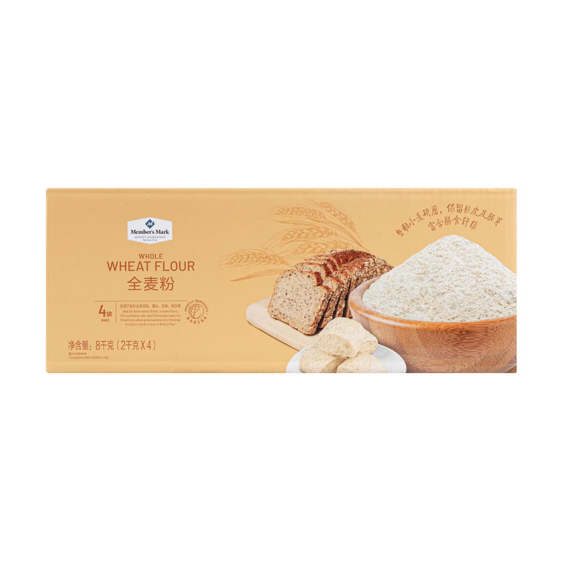 麦香四溢小麦粉麸皮面包馒头花卷 4袋 山姆超市MM全麦粉8kg 2kg