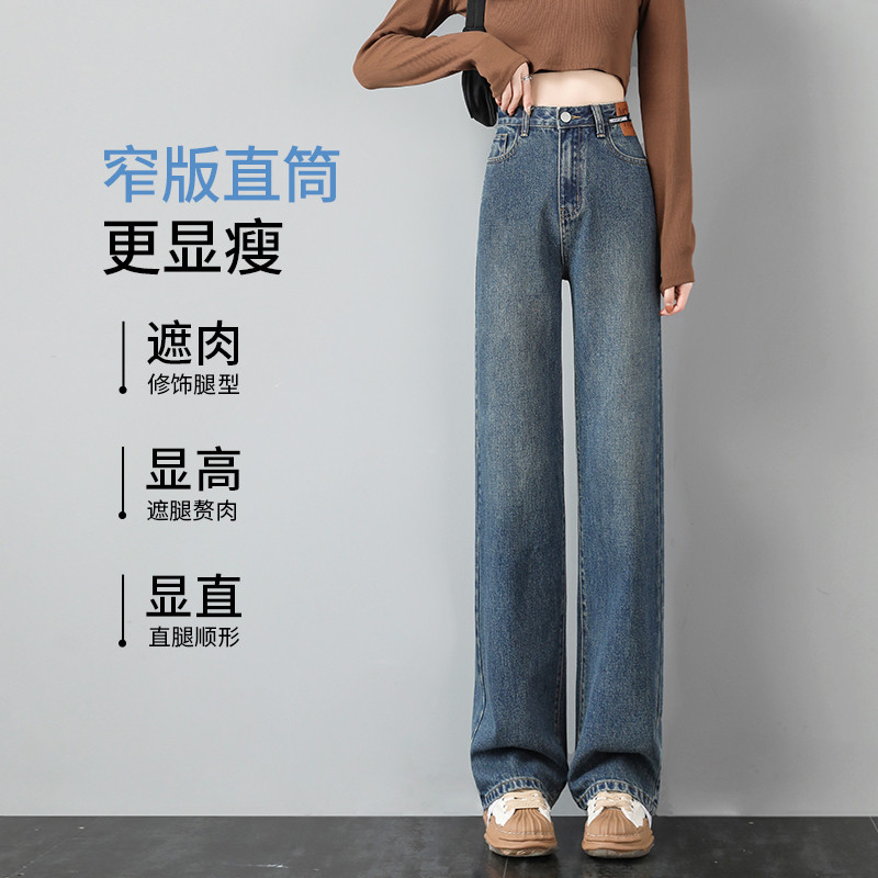 百搭显瘦复古直筒宽松女士裤 大码 女2025新款 牛仔裤 子秋 高腰阔腿裤