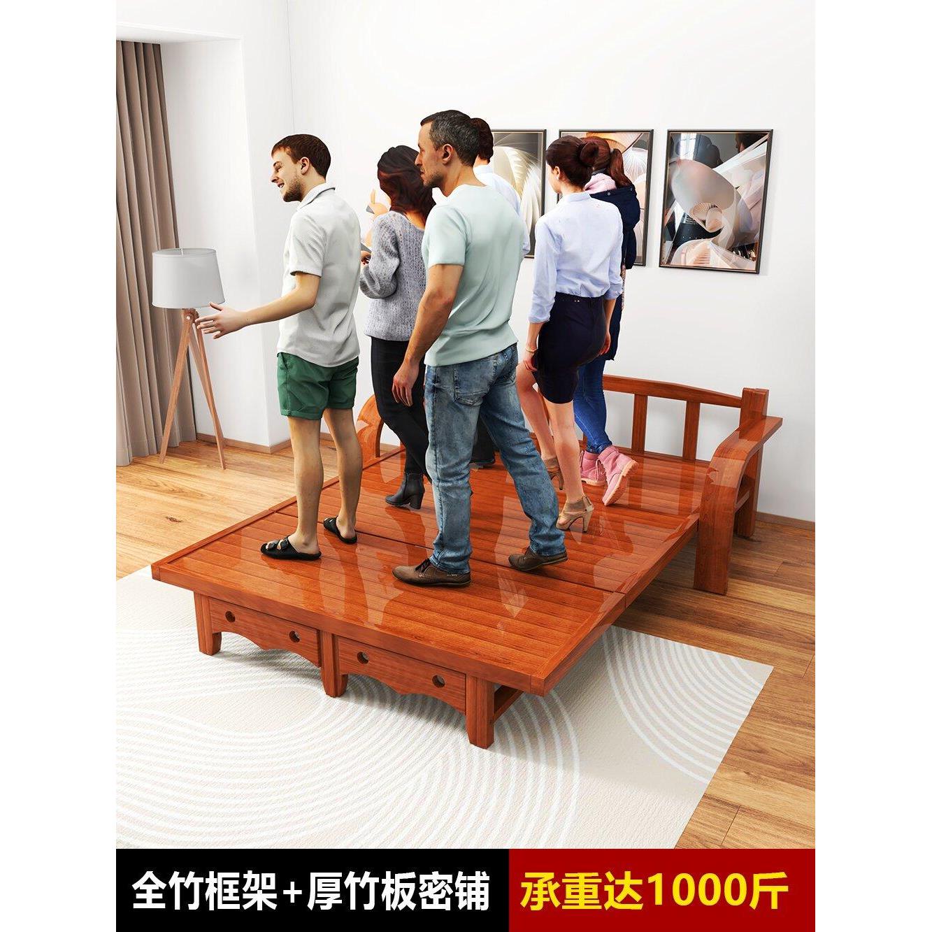折叠床单人午休家用1.2米1.5双人午睡竹床小户型多功能两用沙发床