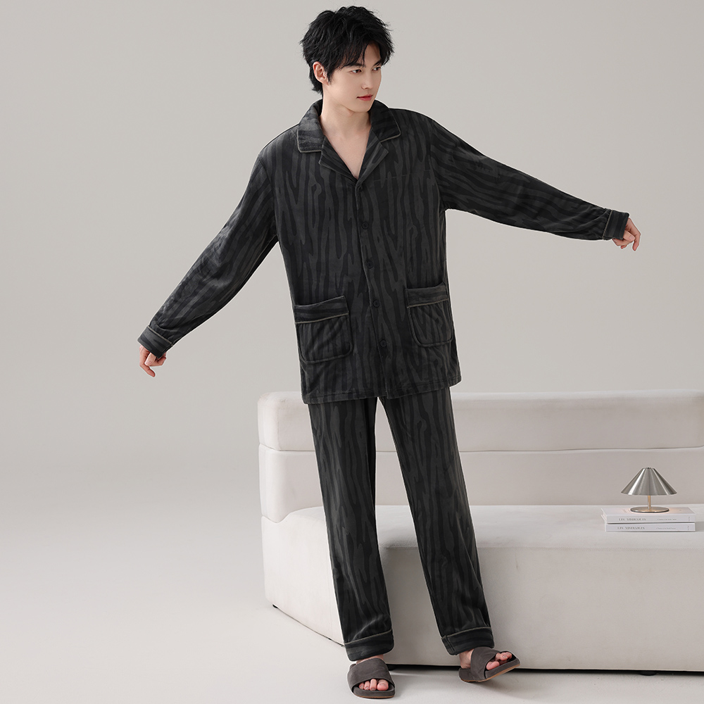宽松中年珊瑚绒家居服大码 开衫 外穿 加绒薄绒秋冬季 海岛绒睡衣男士
