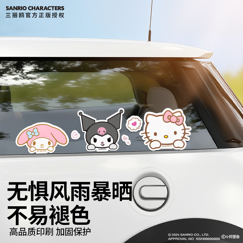 三丽鸥汽车贴纸可爱卡通个性 饰贴 创意车贴车窗划痕遮挡贴后玻璃装