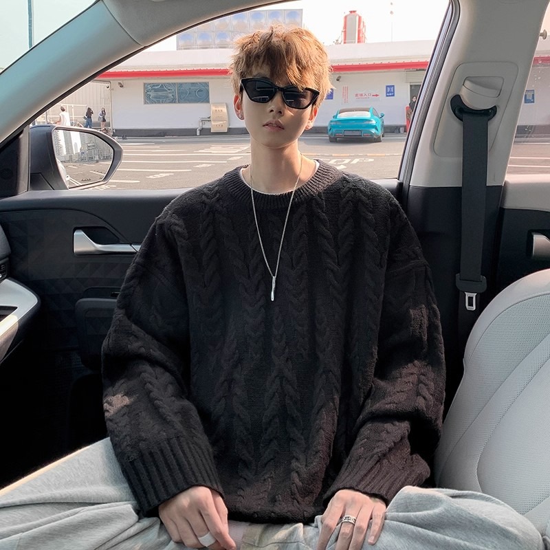 外套毛衫 三福2025秋冬新款 宽松针织衫 情侣美式 男 英文刺绣麻花开衫