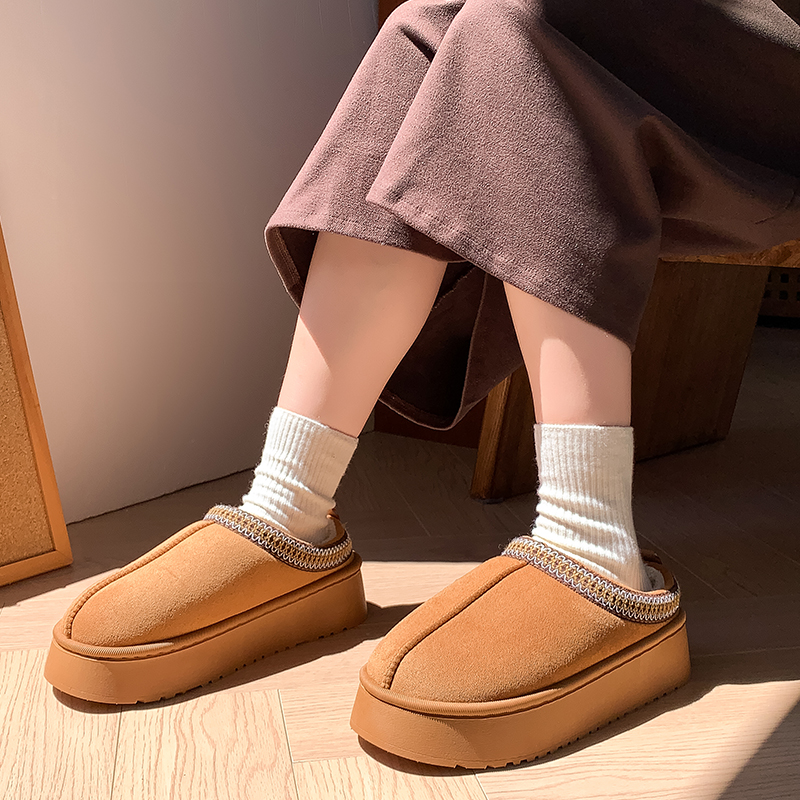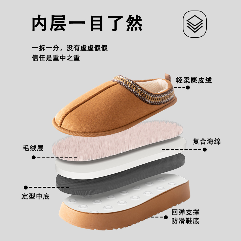 防滑月子鞋 棉拖鞋 麂皮绒女冬大童室内外居家用男厚底儿童毛毛拖鞋