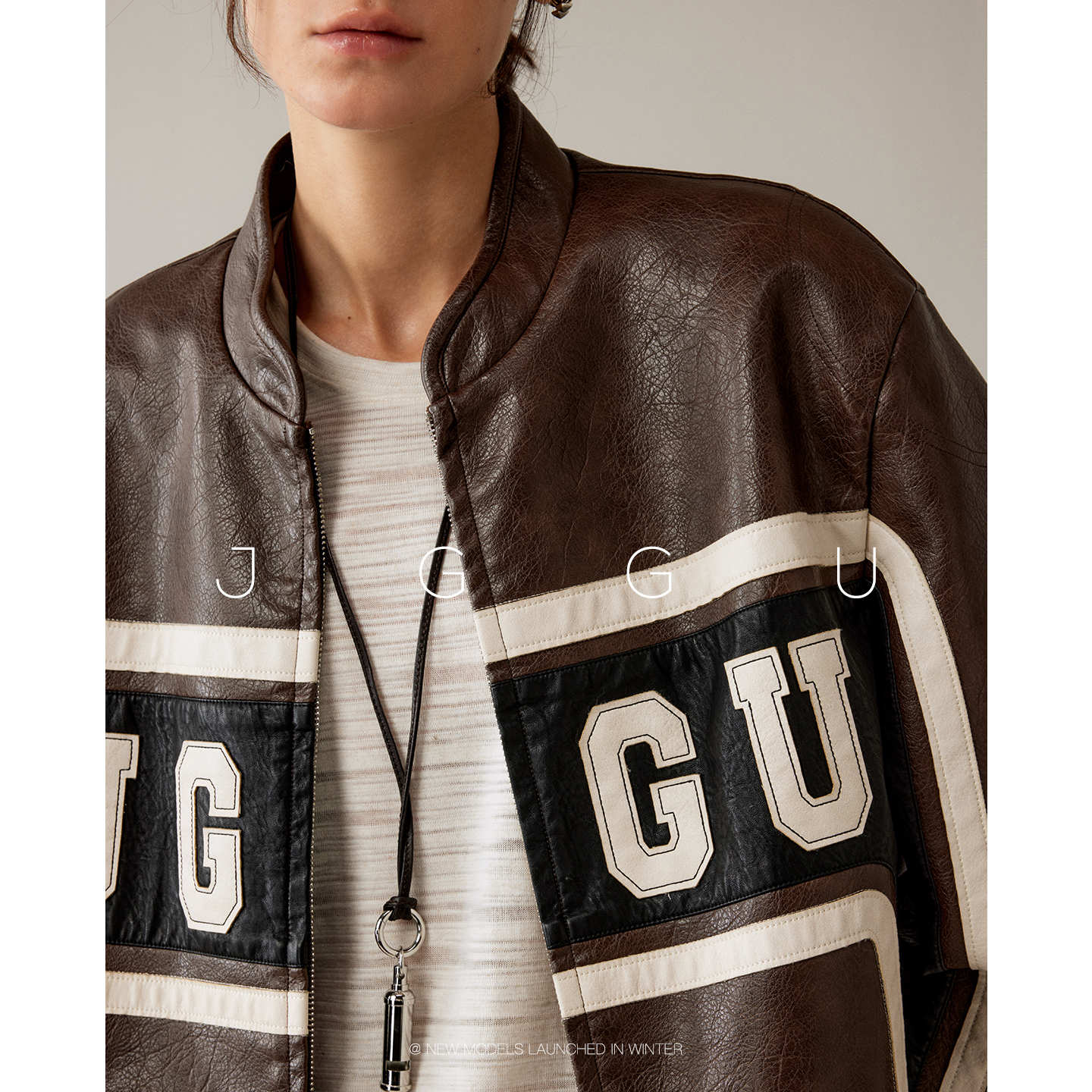 复古机车皮衣外套女 高品质PU皮面料美式 晶咕黑标JGGU 柔软雕塑