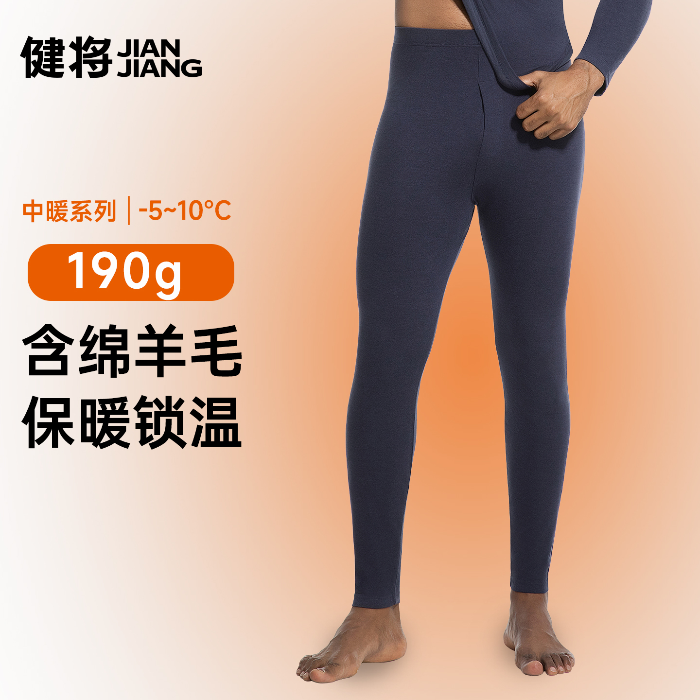 男青少年羊毛打底裤 男款 秋冬季 带发热抗寒加绒保暖裤 新款 健将秋裤