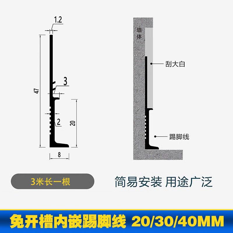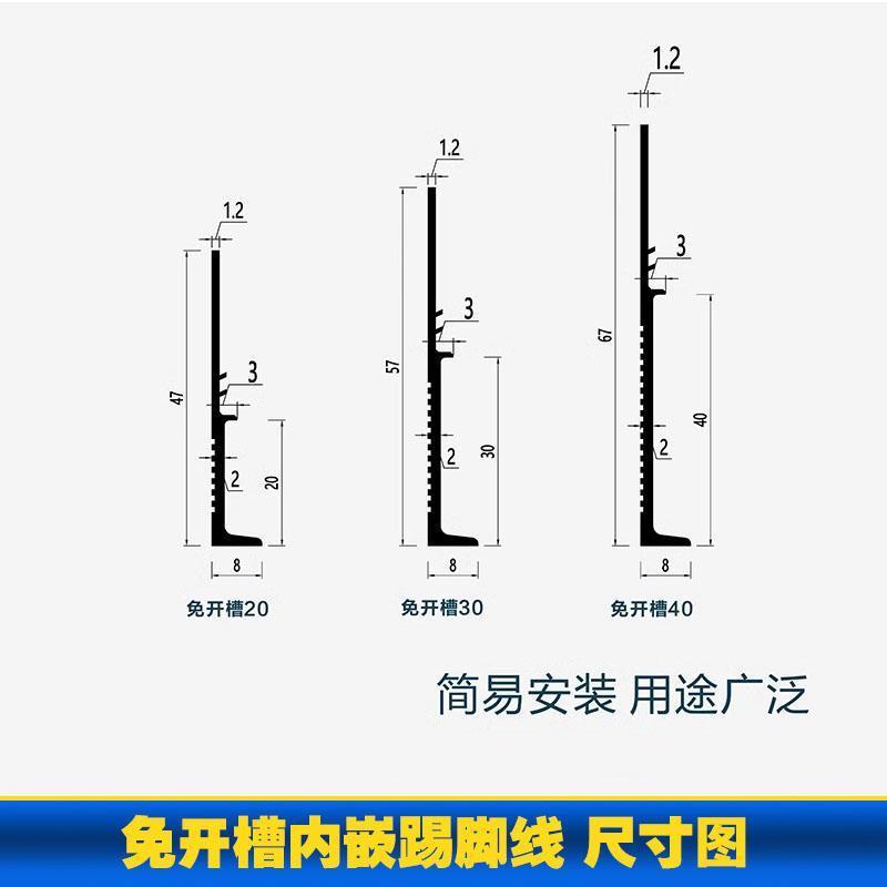 铝合金踢脚线卡扣式 全铝贴脚线条6cm8cm不锈钢超薄极简金属地脚线