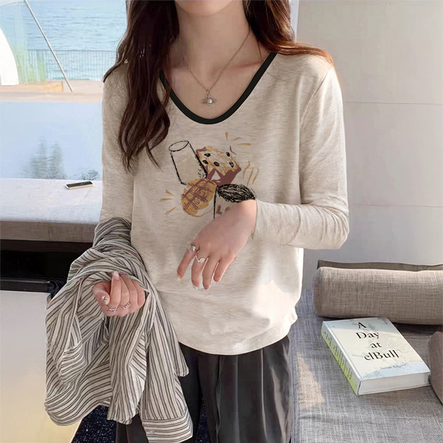t恤女2025新款 v领打底衫 爆款 上衣内搭可外穿秋季 修身 灰色正肩长袖